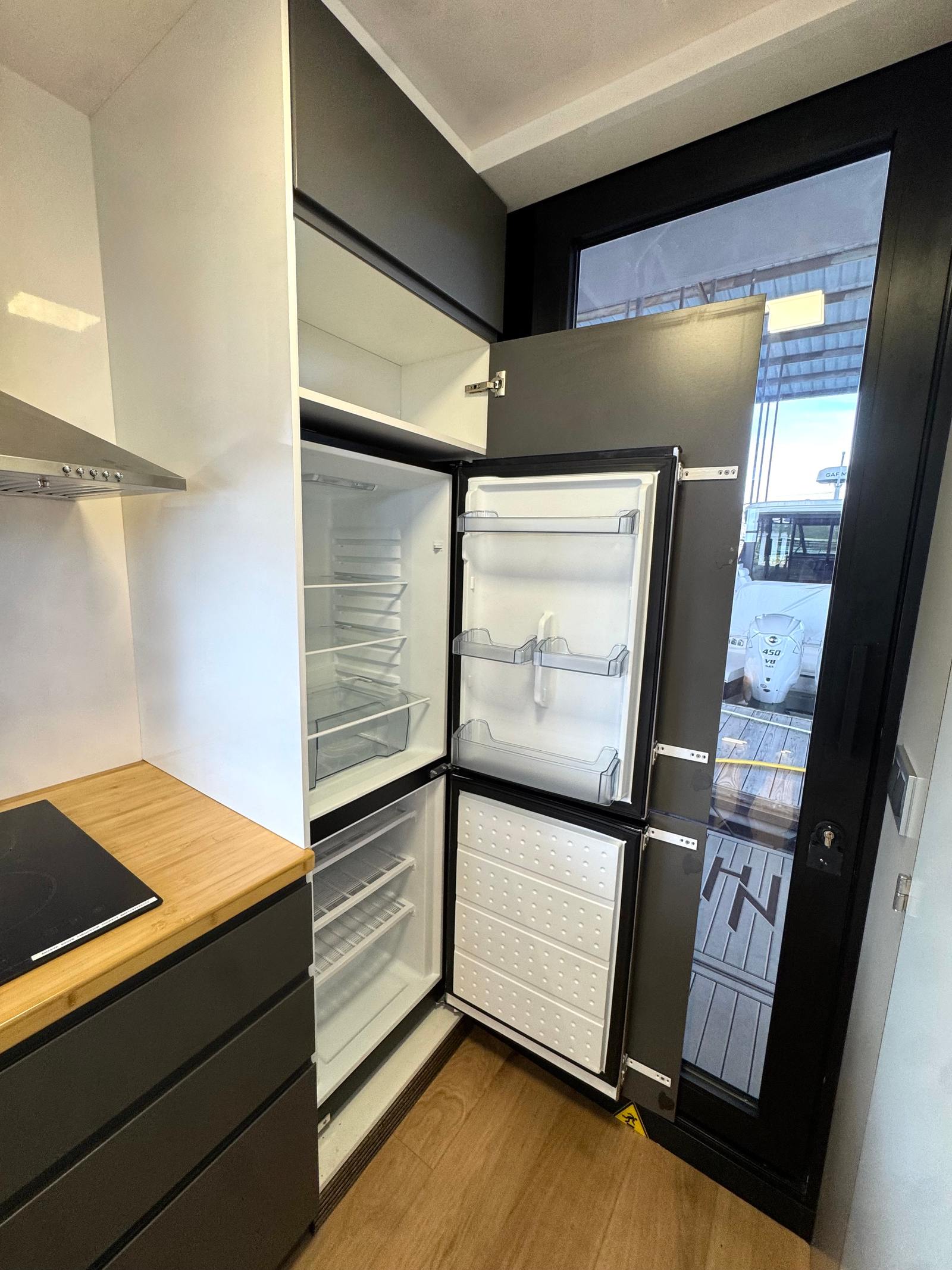 - Front cupboard with counter top in upper cabin
