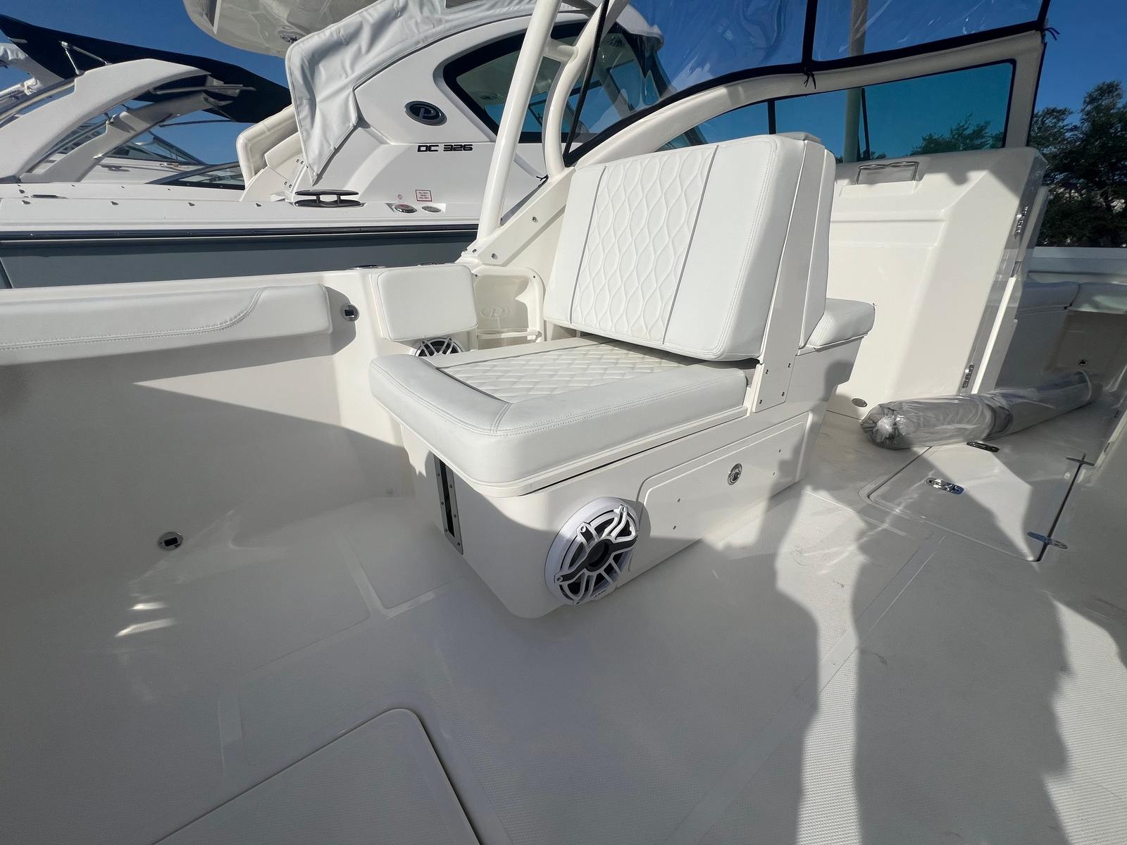 Owning the Pursuit DC 246 means embracing a lifestyle of fun, relaxation, and adventure. The spacious Dual Console layout provides ample seating for family and friends, making it perfect for social gatherings, sunbathing, or sharing a meal on the water. The comfortable white cockpit upholstery invites you to unwind, while the advanced lighting systems set the mood for any occasion. Whether you’re listening to music on the premium stereo or enjoying the glow of underwater lights during an evening cruise, every moment aboard this Pursuit boat is designed for enjoyment.The DC 246’s thoughtful features enhance comfort and convenience, allowing you to focus on making memories. The protective curtains and bow cover shield you from wind and spray, while the windshield wiper keeps your view clear. With easy access to rod holders and a powerful anchor windlass, you can seamlessly transition from cruising to fishing or relaxing at anchor.