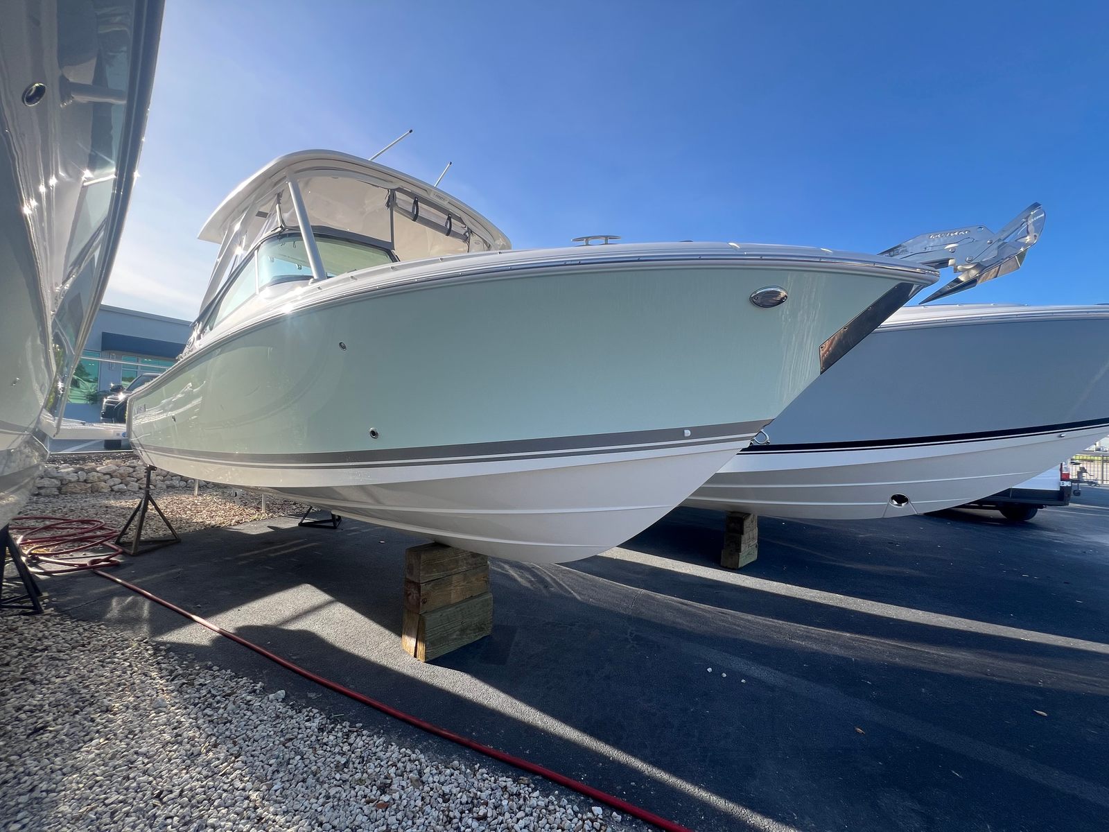 The Pursuit DC 246 is as practical as it is stylish. Its Dual Console design offers flexible storage options for gear, snacks, and personal items, keeping the deck clutter-free and organized. The boat’s manageable length of just over 25 feet makes docking and maneuvering straightforward, even for those new to boating. Fuel efficiency is enhanced by the advanced engine technology, allowing you to spend more time on the water and less at the pump.Maintenance is simplified thanks to Pursuit’s reputation for durable construction and quality materials. The hardtop rod holders and anchor windlass add-on make fishing and anchoring effortless, while the protective covers and curtains help preserve the boat’s pristine condition. Whether you’re planning a quick day trip or an extended outing, the DC 246 is equipped to handle your needs with ease.