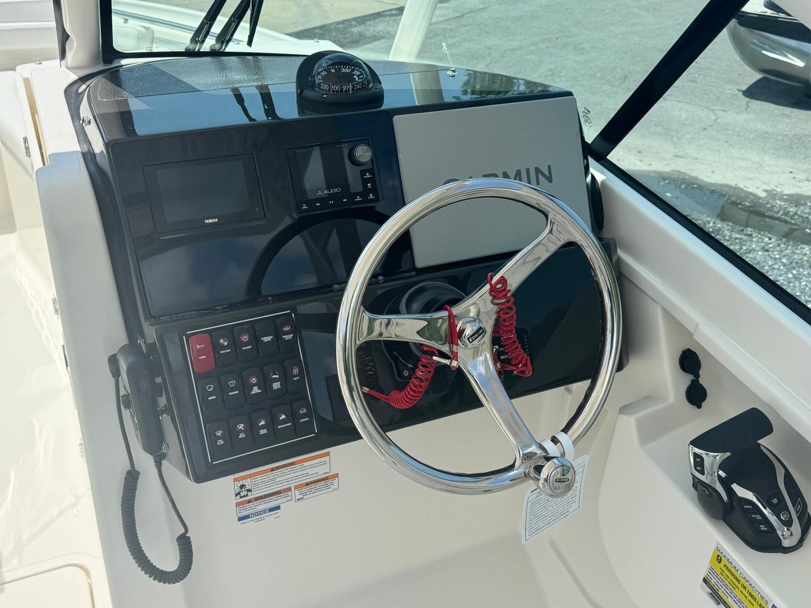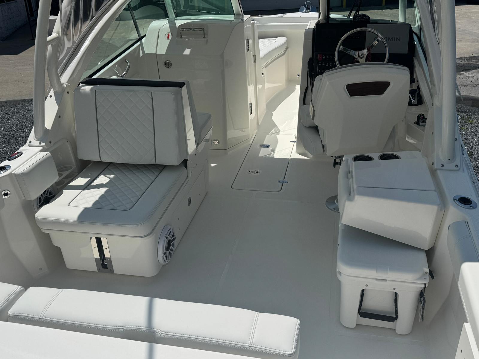 - Garmin Electronics Package (GPSMAP 8612XSV, Airmar B75M 0-7 Degree 600 watt CHIRP Transducer, NMEA 2000 Starter kit, Pursuit Custom Dash Panel, VHF Radio) (requires stereo option)