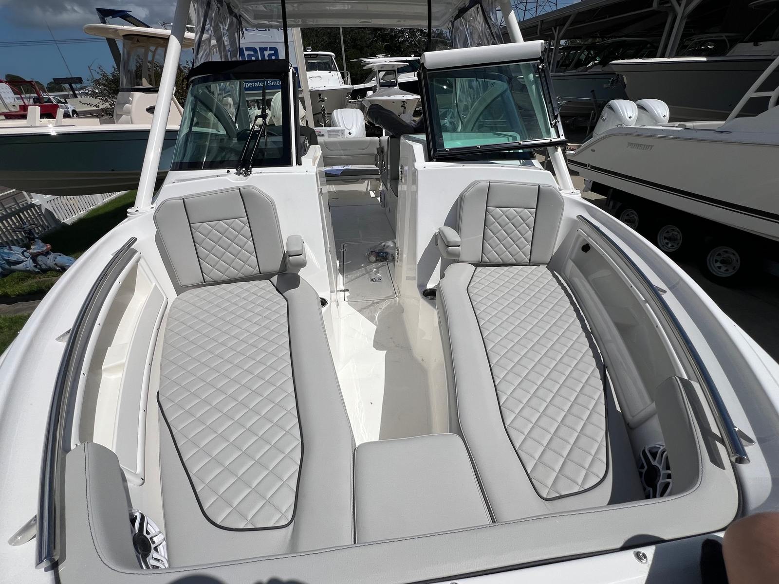 At the heart of the Pursuit DC 246 is a powerful single engine delivering an impressive 350 horsepower. This robust engine ensures smooth acceleration, responsive handling, and the ability to reach exhilarating speeds, whether you are cruising along the coastline or heading out for a day of water sports. The advanced engineering of the Pursuit DC 246 guarantees a stable and comfortable ride, even in choppy conditions, allowing you to explore new horizons with confidence. With its efficient powertrain, this Dual Console boat for sale is designed to maximize your time on the water while minimizing fuel consumption.