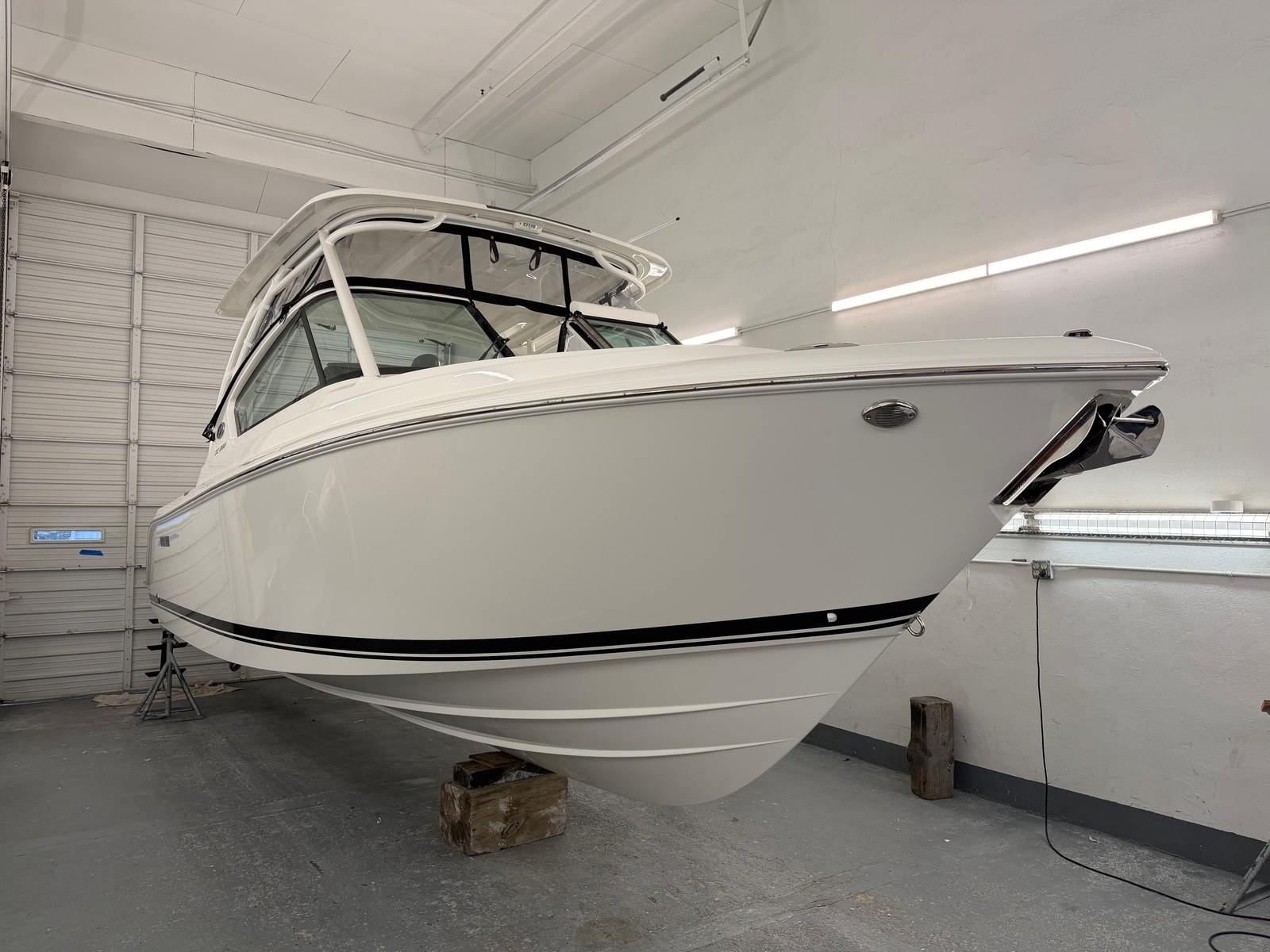 The 2026 Pursuit DC 266 dual console boat is a testament to Pursuit’s commitment to quality and innovation. Measuring an impressive 27.33 feet in length, this vessel offers ample space for relaxation, entertainment, and adventure. The fresh white hull, accented by a bold black bootstripe, exudes modern elegance, while the carbon helm adds a touch of sophistication to the captain’s domain. Every detail of the DC 266 is crafted to provide a seamless blend of style and functionality, making it an ideal choice for boaters who appreciate both aesthetics and performance.