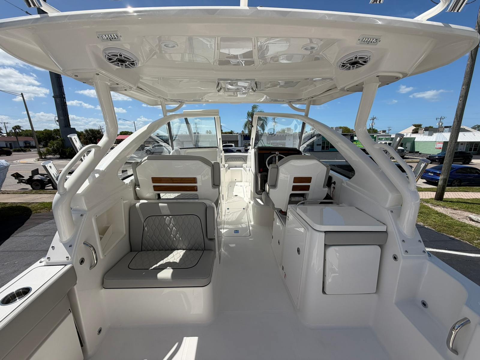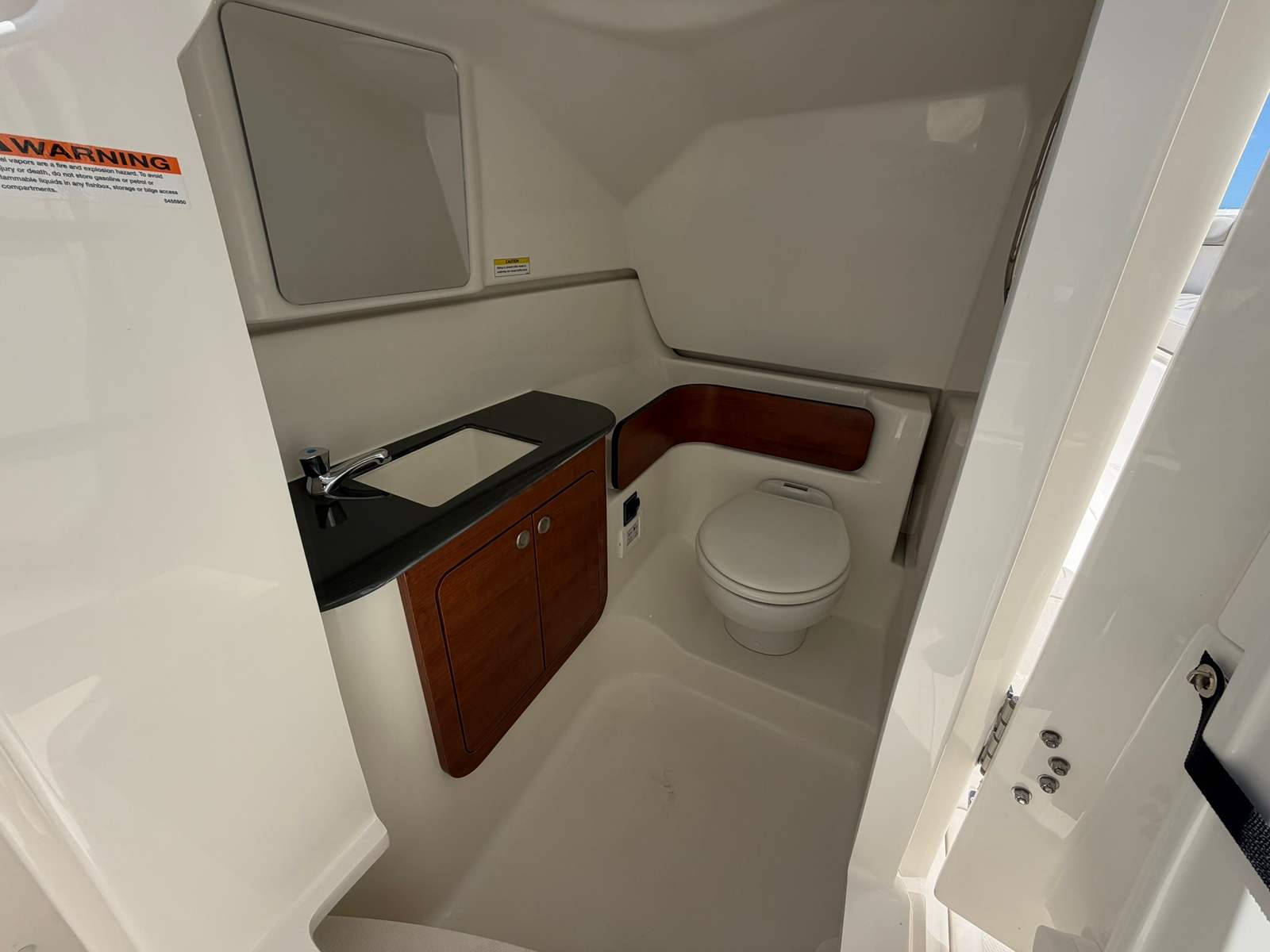 The Pursuit DC 286 is loaded with premium features that enhance both functionality and enjoyment. The twin Yamaha F300 engines provide robust power, while the Yamaha Joystick Control ensures intuitive handling and full maneuverability, making every trip smooth and enjoyable. The hull’s fresh white color, paired with a striking black bootstripe and accent, gives the boat a timeless yet contemporary look. The carbon helm is both stylish and ergonomic, offering excellent visibility and control.Inside, the Sea Salt interior color scheme creates a relaxing and upscale environment, perfect for unwinding with family and friends. The 120V/60Hz 30 Amp dockside power with ELCI protection and shore cord ensures you have reliable power for all your onboard needs, whether you are at the dock or anchored in your favorite cove. For those who love to enjoy the water after sunset, the three all-color Sea Blaze Quattro Spectrum underwater lights add a magical ambiance, illuminating the water in vibrant hues.Music lovers will appreciate the premium stereo upgrade, delivering crystal-clear sound throughout the boat, setting the perfect mood for any occasion. The bow sun pad filler cushion, with dedicated storage, offers a comfortable spot to soak up the sun or relax with a good book, adding to the boat’s versatility and comfort.