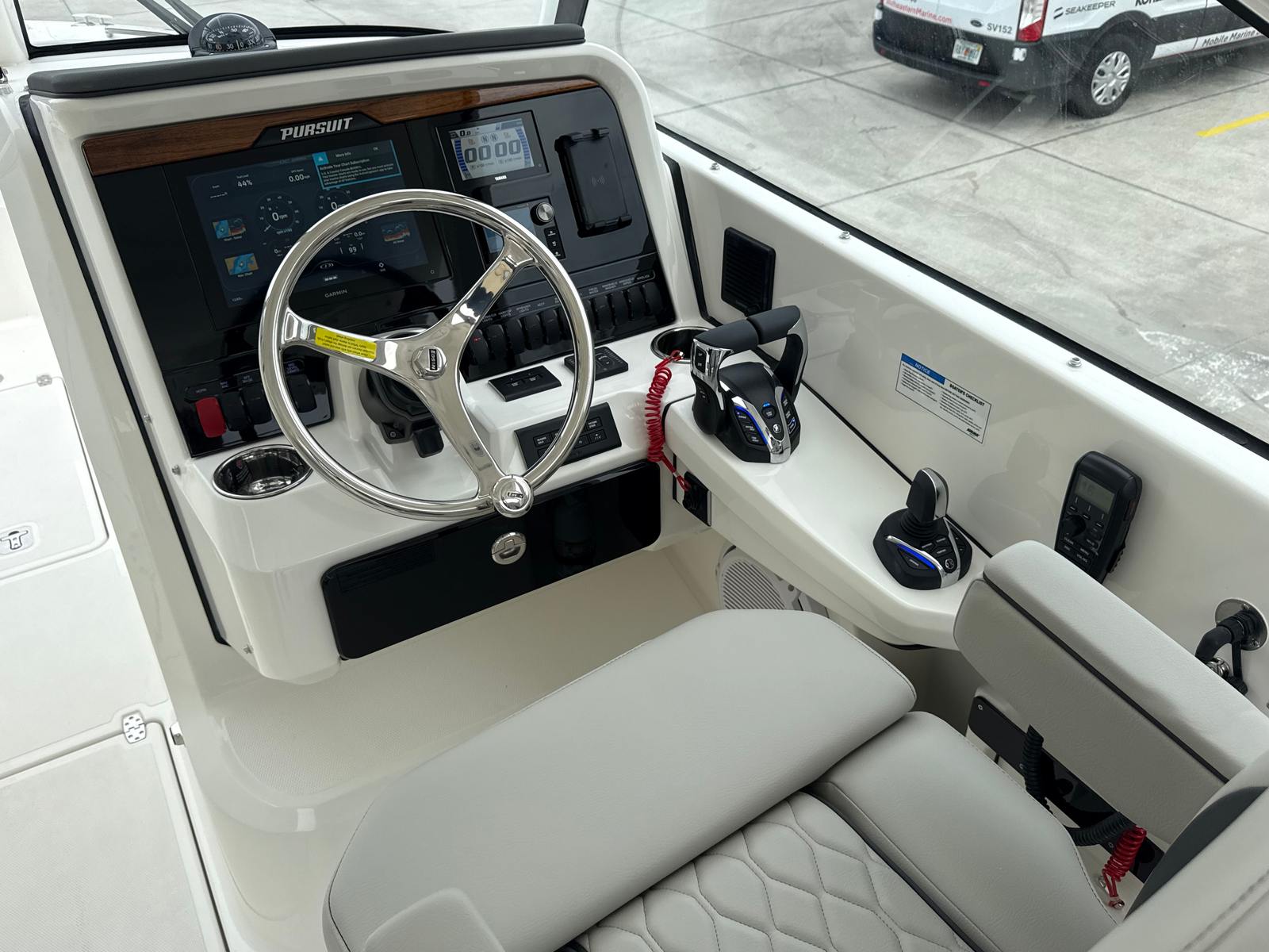Power and precision define the performance of the Pursuit DC 286. Equipped with twin Yamaha F300 engines, this Dual Console is propelled by a total of 600 horsepower, delivering exhilarating acceleration and smooth cruising across a variety of conditions. The advanced Yamaha Joystick Control system offers full maneuverability, allowing for effortless docking, tight turns, and precise handling even in challenging marinas or crowded waterways. Whether you are navigating open waters or exploring secluded coves, the DC 286 provides a responsive and confident ride that will inspire both seasoned boaters and newcomers alike.