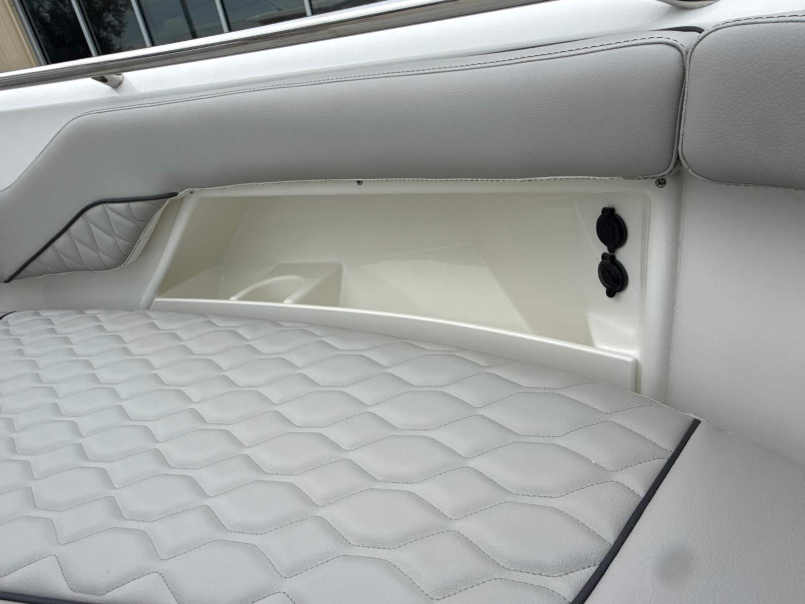 Beyond its impressive style and performance, the Pursuit DC 286 is designed with practical boating needs in mind. The 30-foot length strikes an ideal balance between spaciousness and maneuverability, making it easy to handle in a variety of settings. The Yamaha Joystick Control system simplifies docking, allowing even less experienced boaters to approach slips and docks with confidence.The dedicated storage solutions, such as the bow sun pad filler cushion compartment, help keep the deck organized and clutter-free. The stainless steel refrigerator/freezer is perfect for storing drinks and snacks, ensuring you are always prepared for a day on the water. The 30 Amp dockside power with ELCI protection provides peace of mind, knowing your electrical systems are safeguarded and reliable.