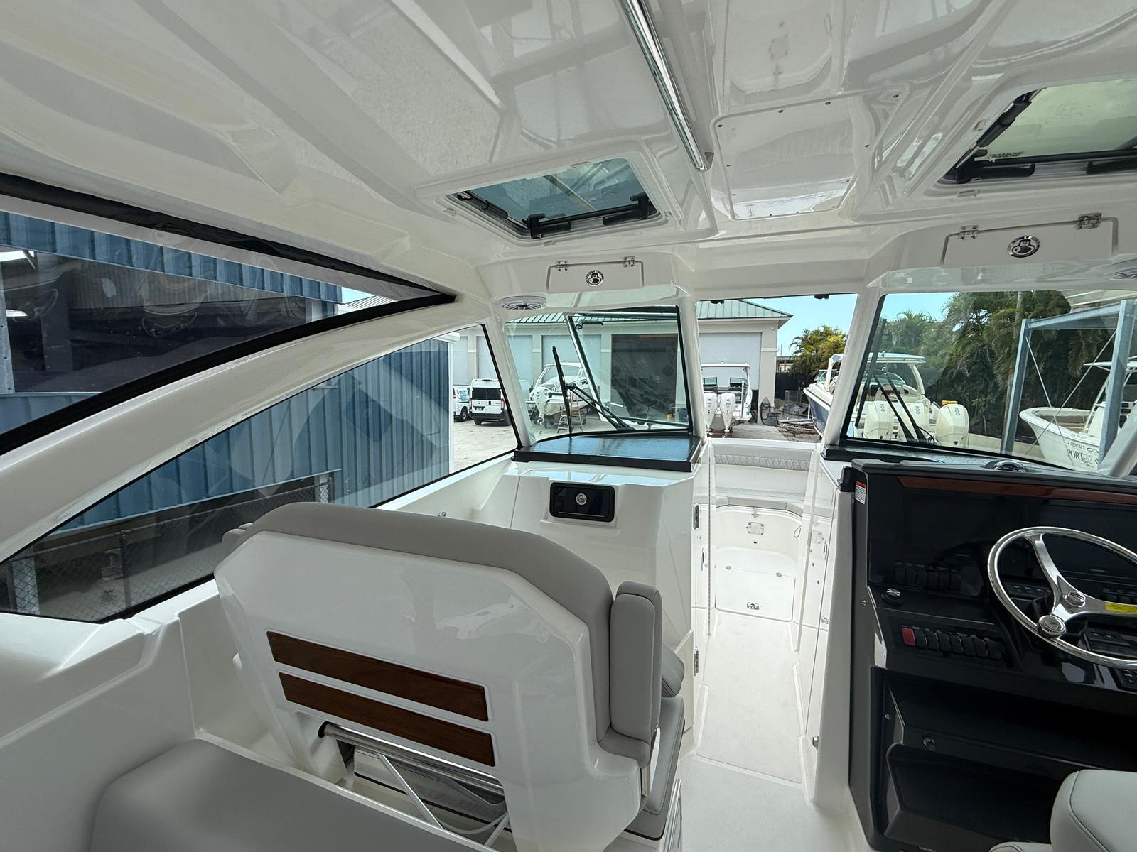 Practicality meets luxury in the Pursuit DC 306. The nearly 32-foot length offers ample storage for gear, water toys, and personal belongings, making it easy to keep the deck organized and clutter-free. The efficient twin engines not only deliver impressive power but also contribute to smooth, fuel-efficient cruising, helping you make the most of every trip.Dockside power and the integrated battery charger simplify overnight stays and extended outings, ensuring your onboard systems remain operational. The stowable sunshade and protective curtains make it easy to adapt to changing weather, while the twin engine covers safeguard your investment when the boat is not in use. The carbon-colored helm and footrest add a touch of style and comfort, making every journey a pleasure.
