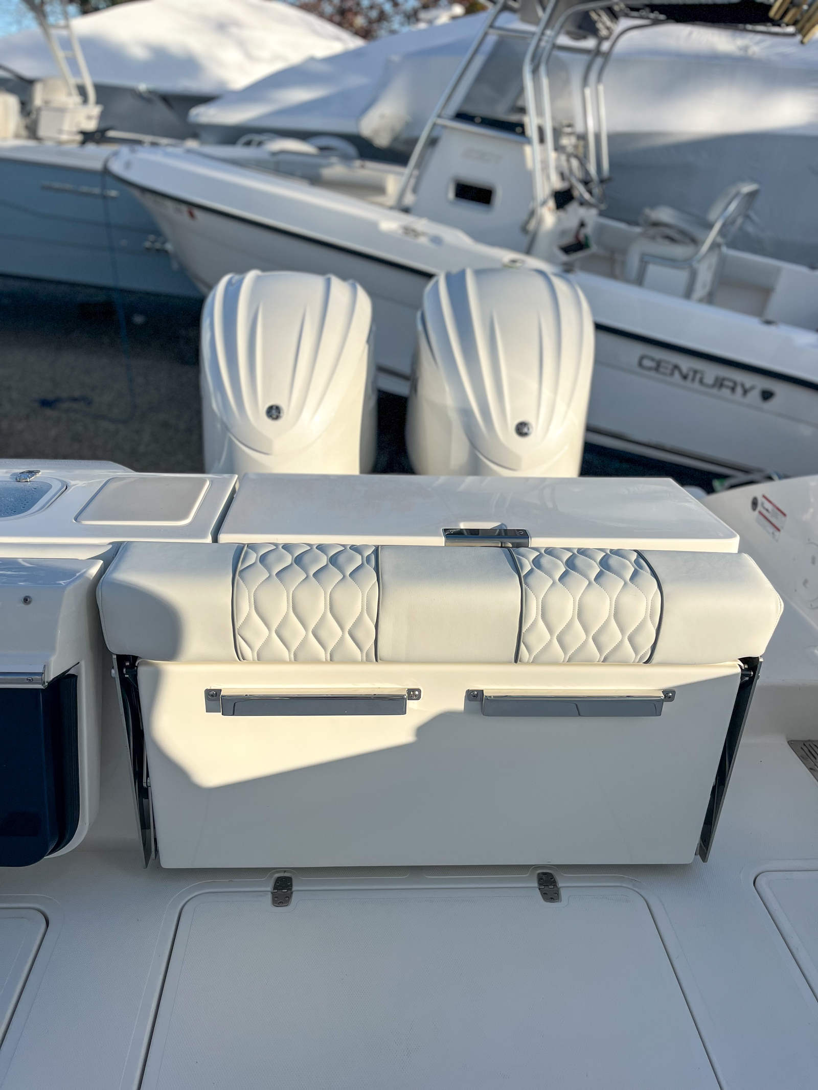 - Twin Yamaha® Digital F300 V6 Offshore (Pearlescent White) w/Integrated Digital Electric Steering (DES) and Helm Master® EX Digital Electronic Control (DEC) (does not include joystick control), Multifunction Display Interface and Manual Engine Flushing System