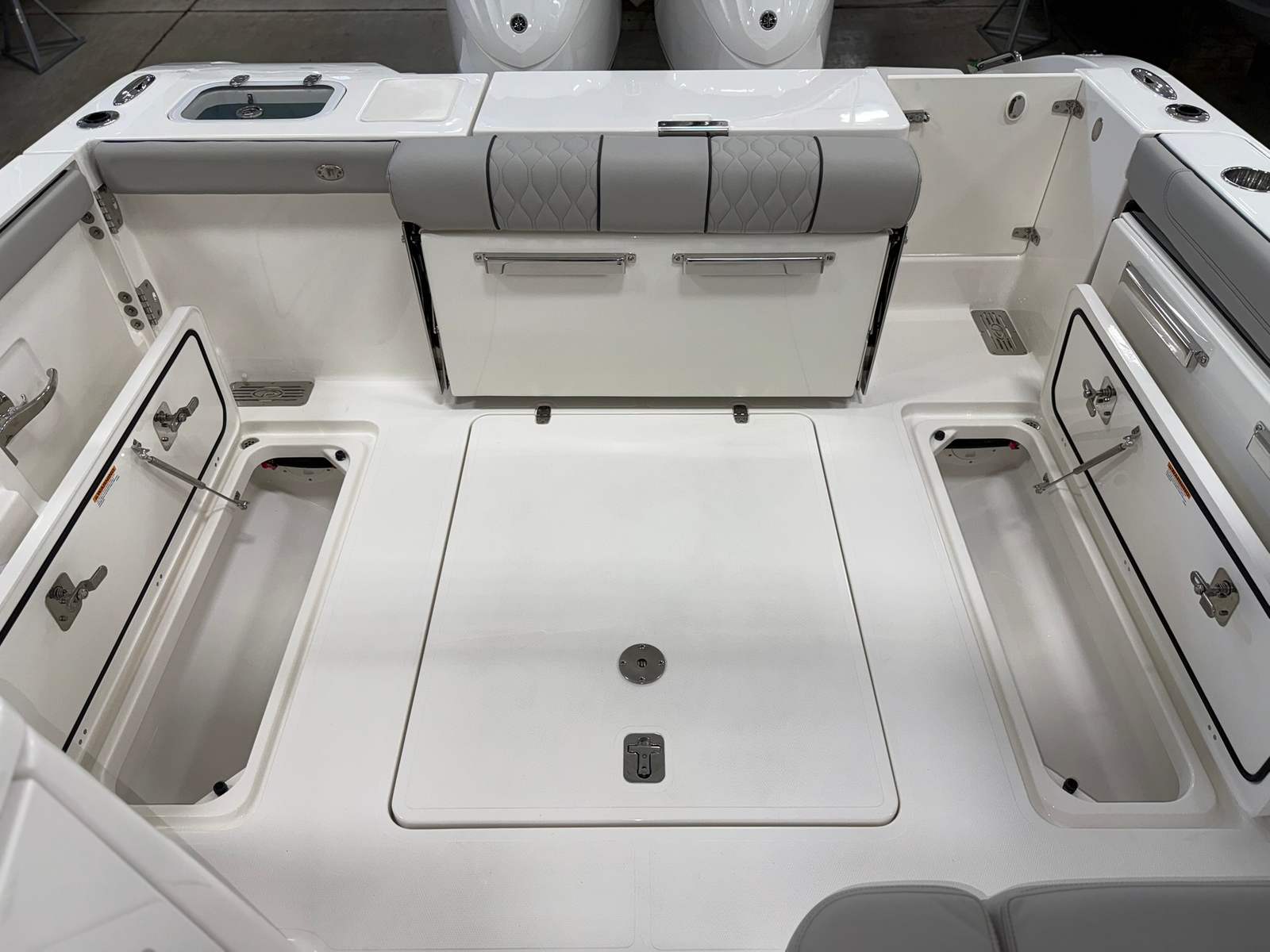 The Pursuit 326 DC is as practical as it is stylish. Thoughtful storage compartments make it easy to keep the deck clutter-free, while the intuitive layout simplifies movement around the boat. Docking is a breeze thanks to the responsive handling and well-placed cleats, making it easy to tie up at your favorite marina or waterfront restaurant. The efficient hull design contributes to fuel savings, allowing you to spend more time on the water and less time refueling. Whether you are planning a quick day trip or an extended adventure, this dual console boat for sale is equipped to meet your needs with ease and convenience.