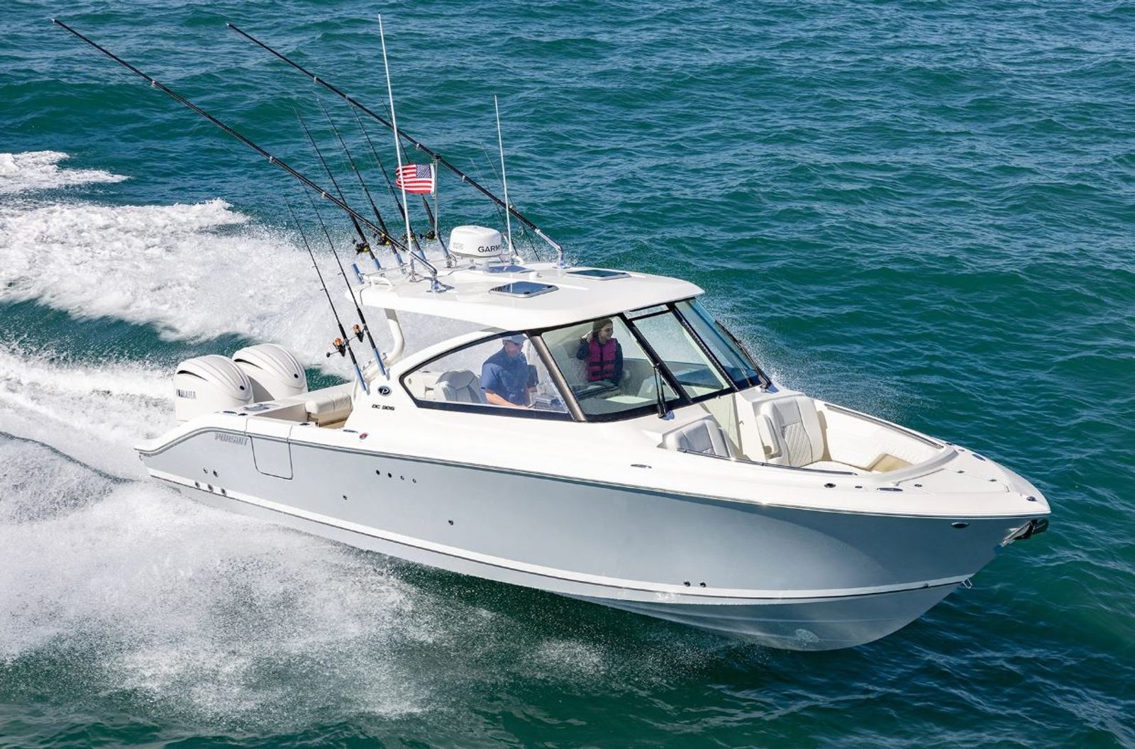 Power and precision define the Pursuit DC 306. Equipped with twin Yamaha Digital F300 V6 Offshore engines in a striking Pearlescent White finish, this dual console boat boasts a combined 600 horsepower. The integrated Digital Electric Steering (DES) and Helm Master EX Digital Electronic Control (DEC) system provide seamless handling and responsive control, making docking and maneuvering effortless. The manual engine flushing system ensures easy maintenance, while the multifunction display interface keeps you informed and in command at all times. With this level of performance, the Pursuit DC 306 is ready to tackle everything from leisurely cruises to high-speed adventures.