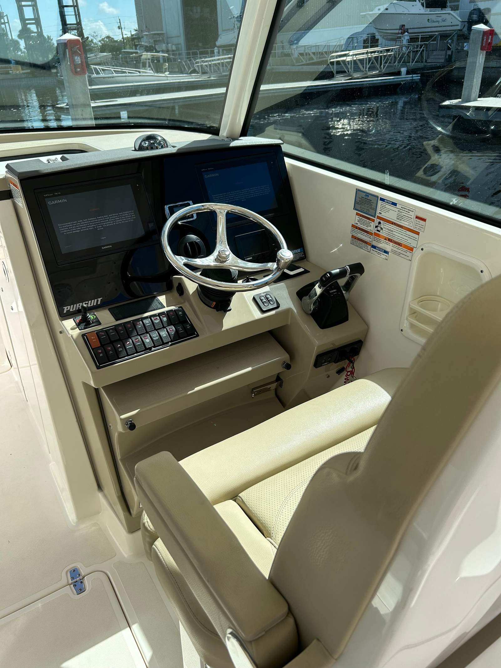 Owning a Pursuit DC 325 Dual Console boat opens up a world of fun and enjoyment. The expansive seating areas invite you to gather with friends and family for sun-soaked afternoons, while the versatile layout makes it easy to transition from cruising to fishing or water sports. The DC 325’s thoughtful design prioritizes comfort, with plush seating and ample shade options to keep everyone relaxed and happy. Whether you’re hosting a sunset cruise or heading out for a weekend getaway, this Pursuit boat for sale offers the perfect blend of luxury and adventure.