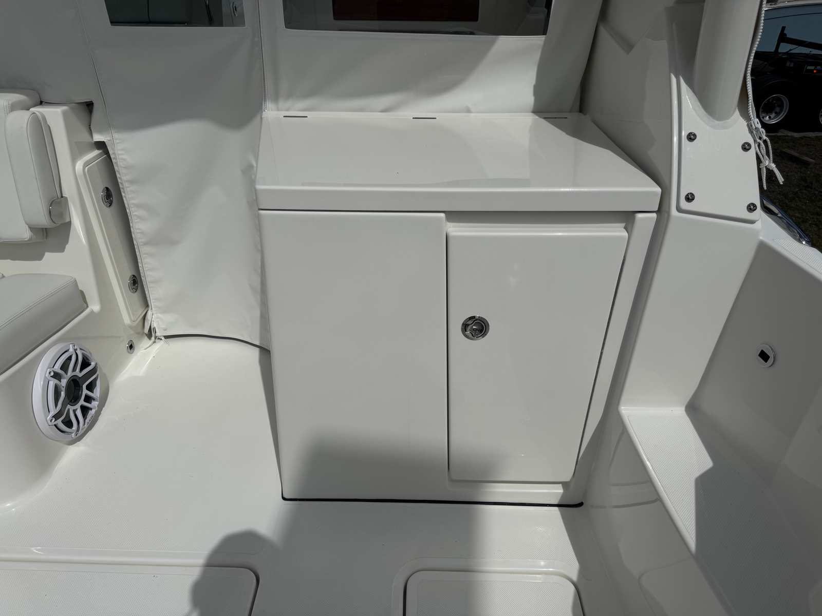 The Pursuit DC 326 is designed with practicality in mind, making ownership as enjoyable as it is effortless. The spacious layout offers ample storage for gear, water toys, and personal items, keeping the deck clutter-free and organized. The intuitive helm and responsive controls make docking and maneuvering straightforward, even for less experienced boaters. Fuel efficiency is enhanced by the advanced Yamaha engines, allowing you to spend more time on the water and less time at the pump.The generator and air conditioning package extend your boating season, providing comfort and convenience during overnight stays or long weekends on the water. The bridge deck teak table with storage adds versatility, serving as a dining area, workspace, or gathering spot for games and conversation. Every detail of the DC 326 is crafted to enhance your boating lifestyle, from easy-to-clean surfaces to thoughtfully placed amenities.