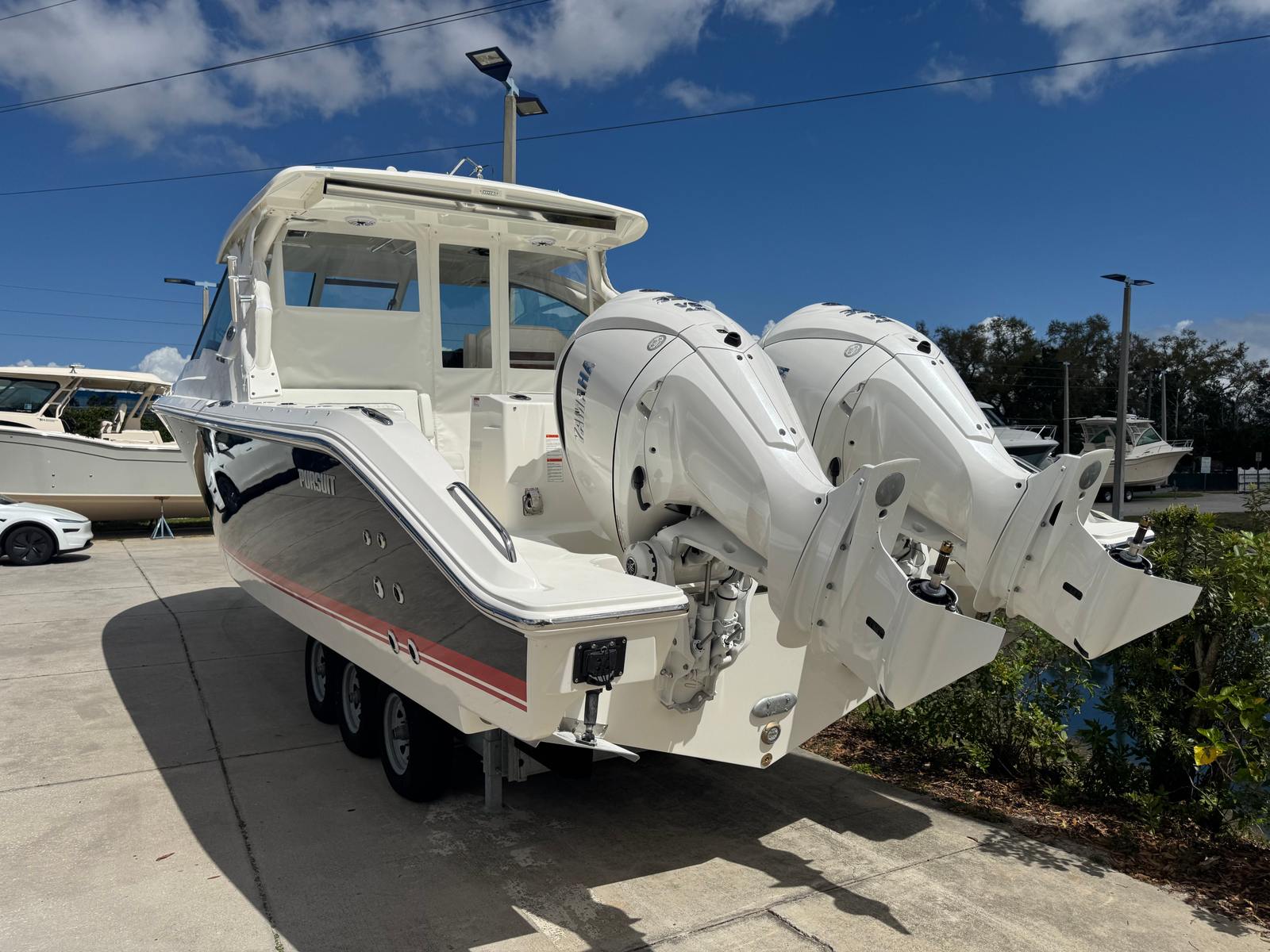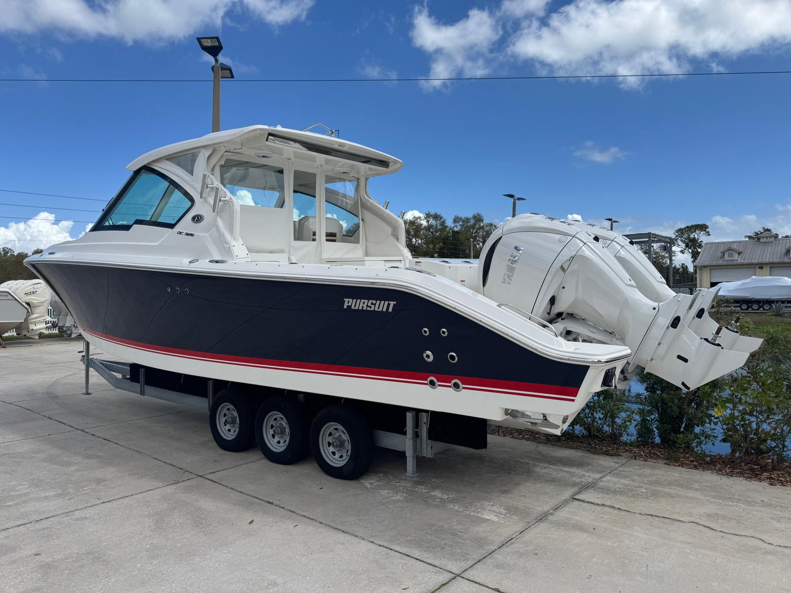 Power and precision are at the heart of the Pursuit DC 326. Equipped with twin Yamaha F350 engines, this Dual Console delivers a combined 700 horsepower, ensuring exhilarating acceleration and smooth cruising across open waters. Whether you are navigating coastal inlets or heading offshore for a day of adventure, the DC 326 offers responsive handling and impressive stability. The advanced hull design enhances ride quality, providing confidence and comfort even in challenging conditions. For those seeking a Pursuit boat for sale that offers both power and efficiency, the DC 326 is a standout choice.