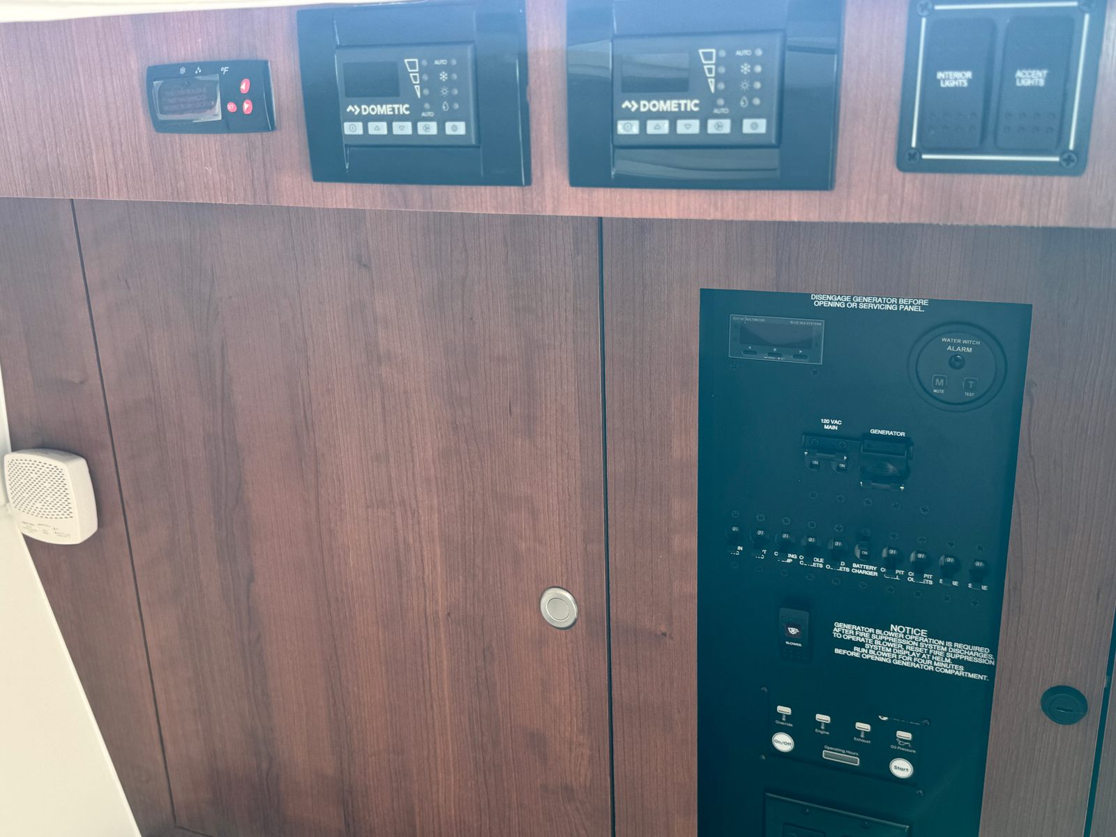 - Air Conditioning Package w/ Reverse Cycle (Cabin/Head 6,000 BTU, Cockpit 12,000 BTU) (Requires Drop Curtain)