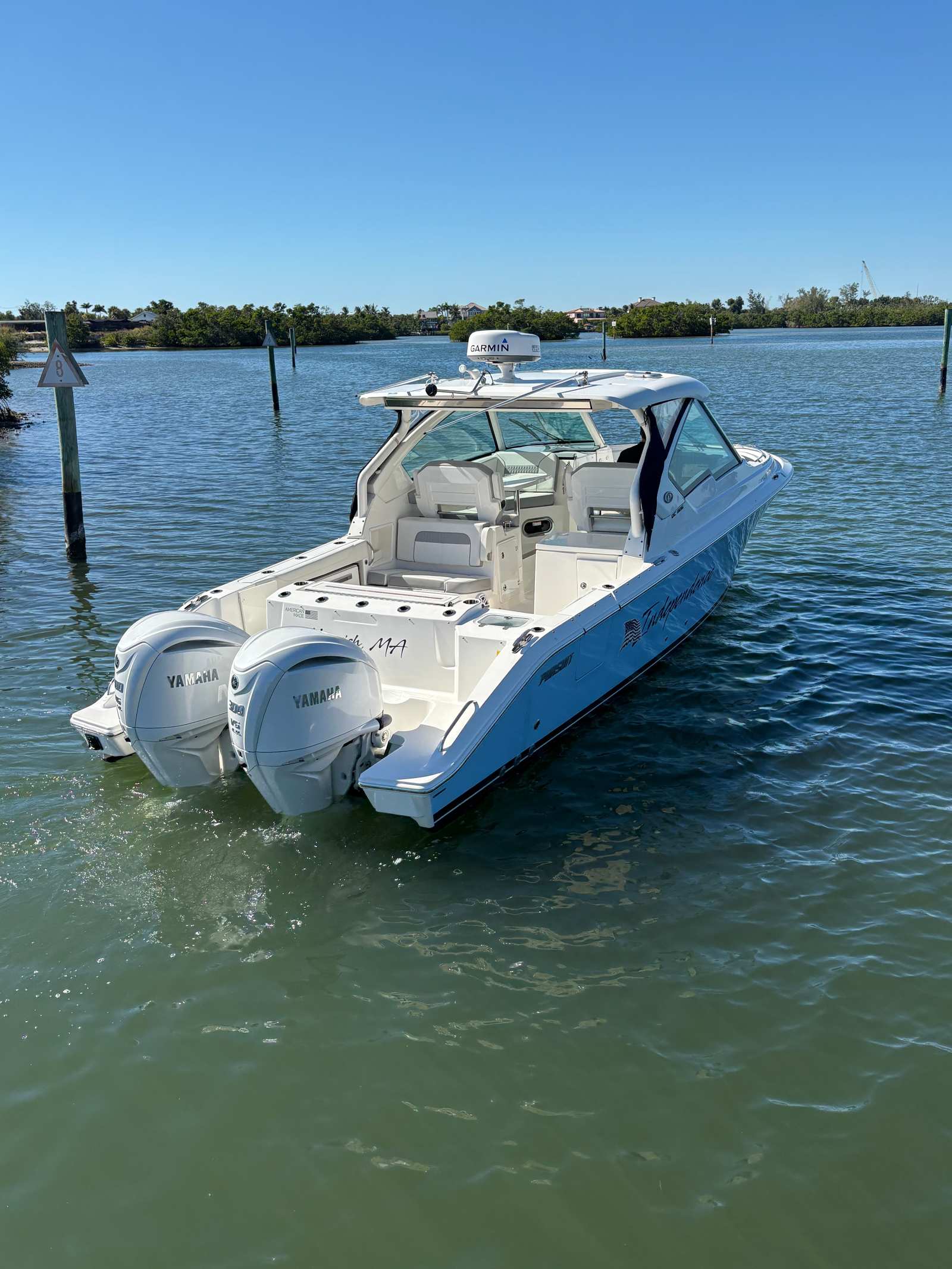 Experience exceptional performance and comfort with this 2023 Pursuit 326 DC, showing just 156 hours and loaded with premium equipment. Powered by twin Yamaha Digital F300 V6 Offshore engines with Yamaha Joystick Control, this versatile dual console delivers confident handling and effortless docking. A bow thruster and autopilot further enhance navigation and control.