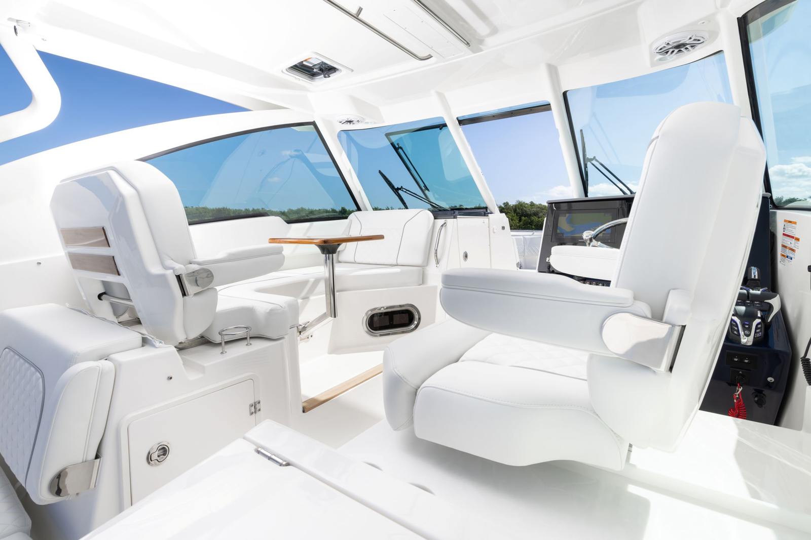 The Pursuit DC 326 is a 34.5-foot Dual Console boat that embodies the spirit of innovation and craftsmanship. Built for the 2026 season, this vessel showcases Pursuit’s commitment to quality and attention to detail. The fresh white hull, accented by a sleek black bootstripe, gives the DC 326 a modern and sophisticated look that turns heads at the marina and on open water. The carbon helm and Tranquil Sea interior create a refined atmosphere, ensuring every moment aboard is comfortable and inviting. As a new boat, the DC 326 offers the latest advancements in marine engineering, making it an ideal choice for those seeking a Pursuit boat for sale with contemporary features and timeless appeal.
