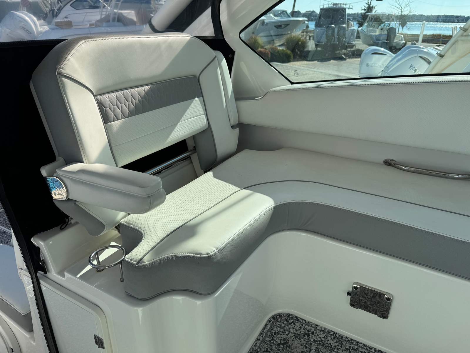 This Pursuit boat for sale is as practical as it is enjoyable. The dual console configuration makes docking and maneuvering straightforward, even for less experienced boaters. Ample storage compartments keep your belongings organized and out of the way, while the well-designed helm offers excellent visibility and control. The boat’s efficient engines provide a balance of power and fuel economy, allowing you to spend more time on the water and less time at the fuel dock. Whether you are planning a weekend getaway or a quick afternoon escape, the Pursuit DC 326 is equipped to handle it all with ease.