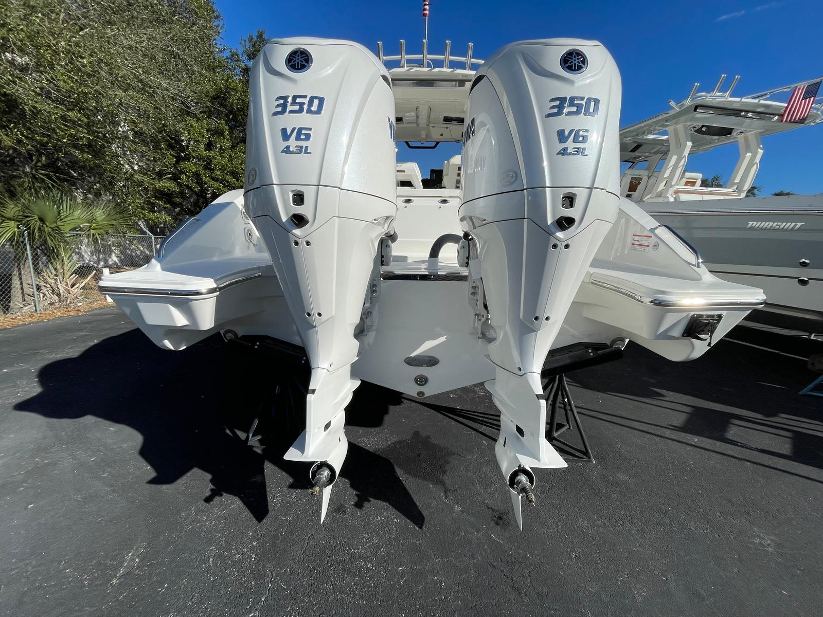 At the heart of the Pursuit OS 325’s exhilarating performance are twin Yamaha F350 engines, delivering a combined 700 horsepower. This powerhouse setup ensures smooth acceleration, impressive top speeds, and reliable cruising capabilities, making every journey as thrilling as it is comfortable. The inclusion of Yamaha Joystick Control with full maneuverability takes the stress out of docking and tight navigation, allowing you to handle the boat with precision and confidence. Whether you are navigating busy harbors or exploring open waters, the OS 325’s advanced propulsion system guarantees a responsive and enjoyable ride.