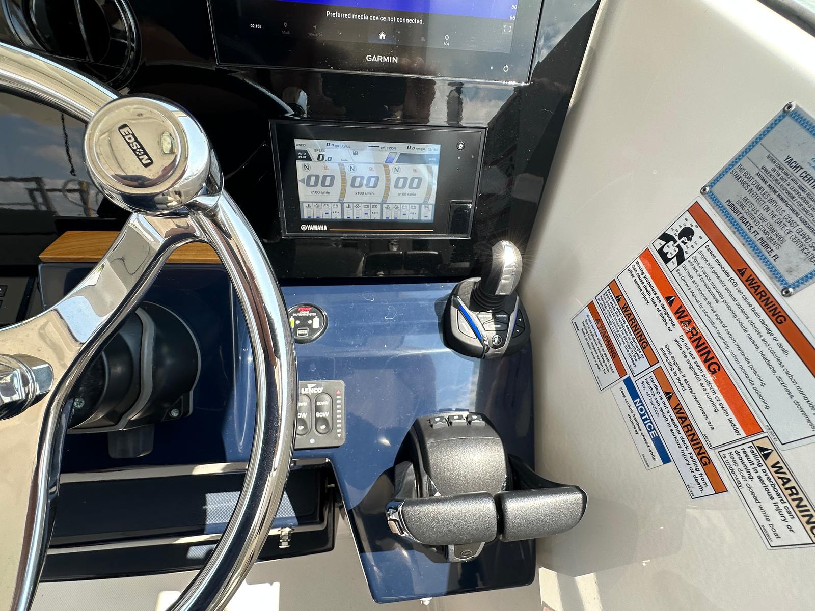 Power and precision define the performance of the Pursuit 355 OS. Equipped with three robust engines delivering a combined 900 horsepower, this cruiser is engineered for exhilarating speed and smooth handling. The triple-engine setup ensures reliable power, whether you are cruising at a leisurely pace or accelerating to reach your favorite destinations quickly. With 350 engine hours, these engines have been well-maintained and are primed for many more seasons of enjoyment. The Pursuit 355 OS offers a responsive ride, making it easy to navigate through various water conditions while providing the confidence and control that experienced boaters appreciate.