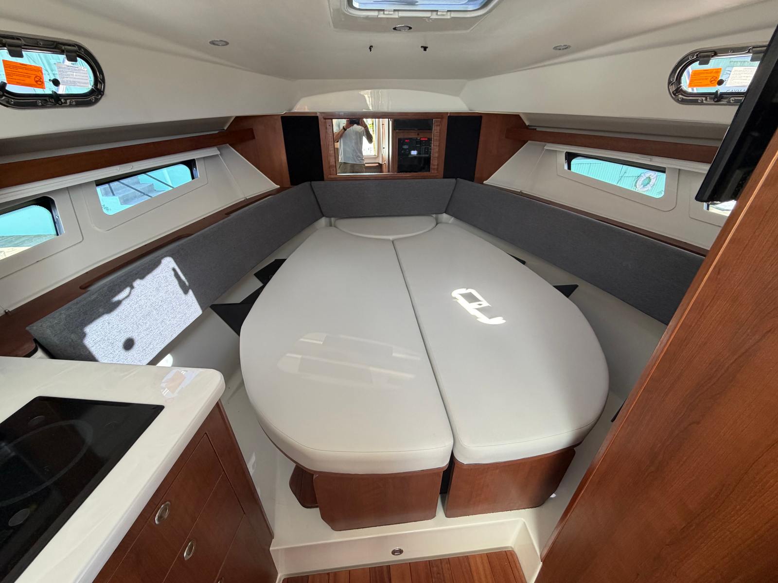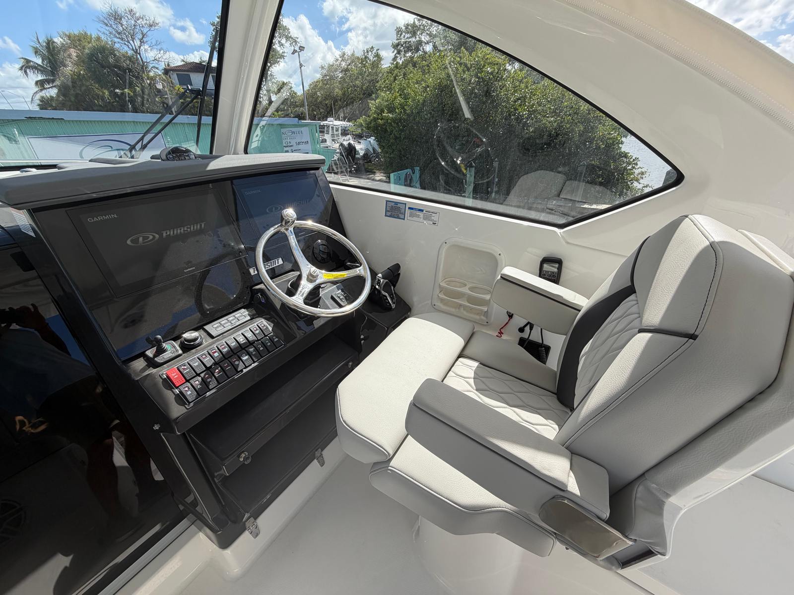 The 2026 Pursuit OS 355 is loaded with special features that set it apart from other cruiser boats for sale. The triple Yamaha F350 engines are a testament to its power and reliability, while the fresh white hull and platinum bootstripe ensure you turn heads at every marina. The carbon helm and footrest offer both style and comfort, creating an ergonomic command center for the captain. Inside, the Coastal Sunrise interior provides a relaxing retreat, perfect for unwinding after a day on the water.For those who value comfort in all seasons, the cockpit air conditioning with reverse cycle heat ensures a pleasant environment, whether you are escaping the summer sun or enjoying a crisp autumn evening. The ACR RCL-100 LED spotlight, complete with remote control at the helm, enhances safety and convenience during nighttime navigation. Underwater LED lights (Sea Blaze X2 Spectrum) add a touch of elegance and excitement, illuminating the water around your boat for evening gatherings or late-night swims.The folding gunwale seat on the starboard side maximizes seating and flexibility in the cockpit, while the forward deck sunpad invites you to soak up the sun in style. Every detail of the OS 355 is designed to enhance your boating experience, from the spacious layout to the premium finishes.
