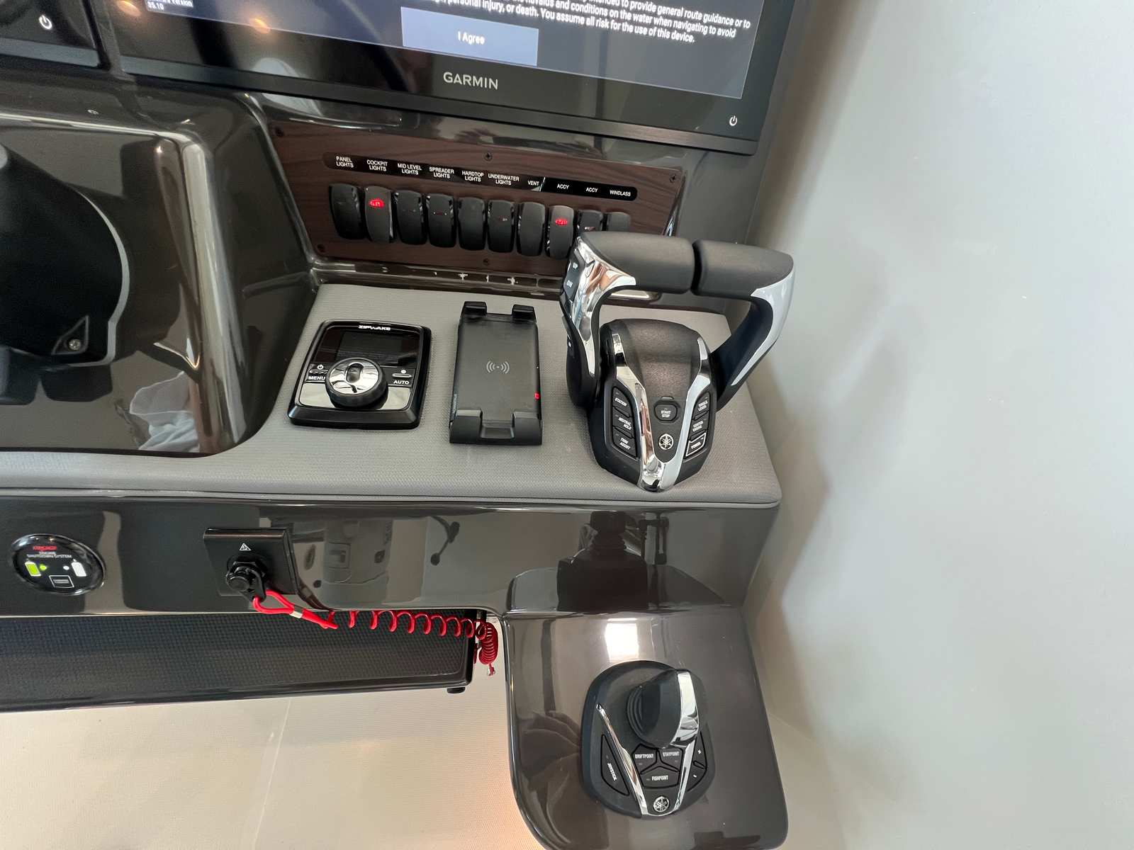 The 2025 Pursuit 405 OS is loaded with premium features designed to enhance your boating experience. Among its standout amenities are bolt-on hardtop rod holders, perfect for anglers seeking convenience and organization. The hull has been meticulously prepared with mask, sand, prep, de-wax, barrier coat epoxy, and antifouling paint, ensuring long-lasting protection and optimal performance in the water. The Driftwood Interior Package - Sport adds a touch of refined elegance to the cabin, creating a warm and inviting atmosphere for all onboard.For those who value comfort and convenience, the electric retractable cockpit sun shade offers adjustable protection from the sun, allowing you to enjoy the outdoors in comfort. The exterior ceramic coating provides an extra layer of durability and shine, keeping your cruiser looking pristine season after season. Navigation is a breeze with the Garmin 2nd Widescreen 22" Display and Garmin Widescreen 22" Display Package, offering state-of-the-art technology for safe and efficient travel. The helm and footrest feature a stylish carbon color, complementing the striking carbon hull color for a cohesive and modern appearance.Additional features include freight, prep, fuel, USCG gear, PDI, and orientation, ensuring that your new Pursuit 405 OS is ready for immediate enjoyment upon delivery.