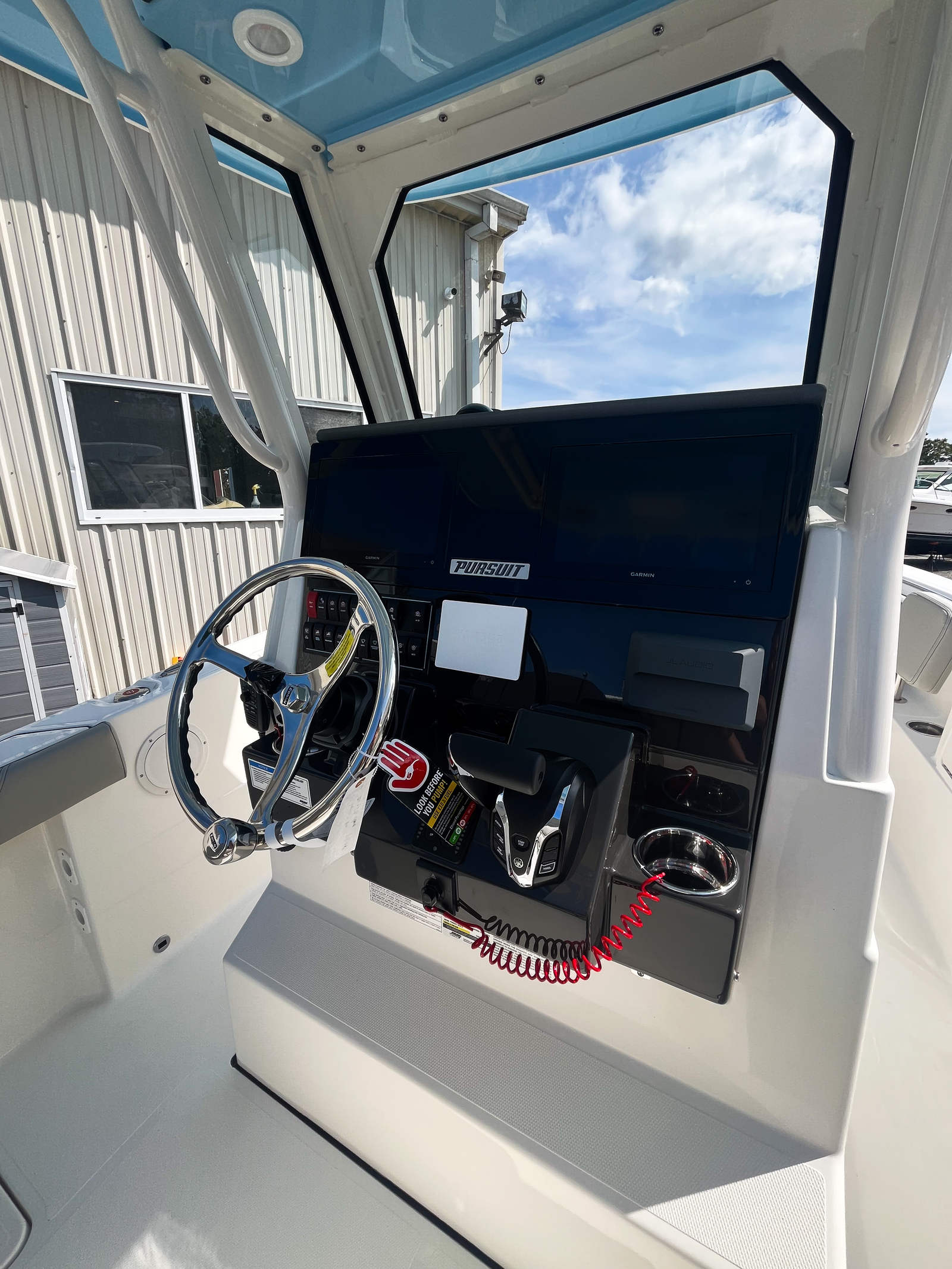 - Garmin Electronics Package (GPSMAP 8612XSV, B75M 20 Degree 600 watt CHIRP Transducer, NMEA 2000 Starter kit, Pursuit Custom Dash Panel, VHF radio)