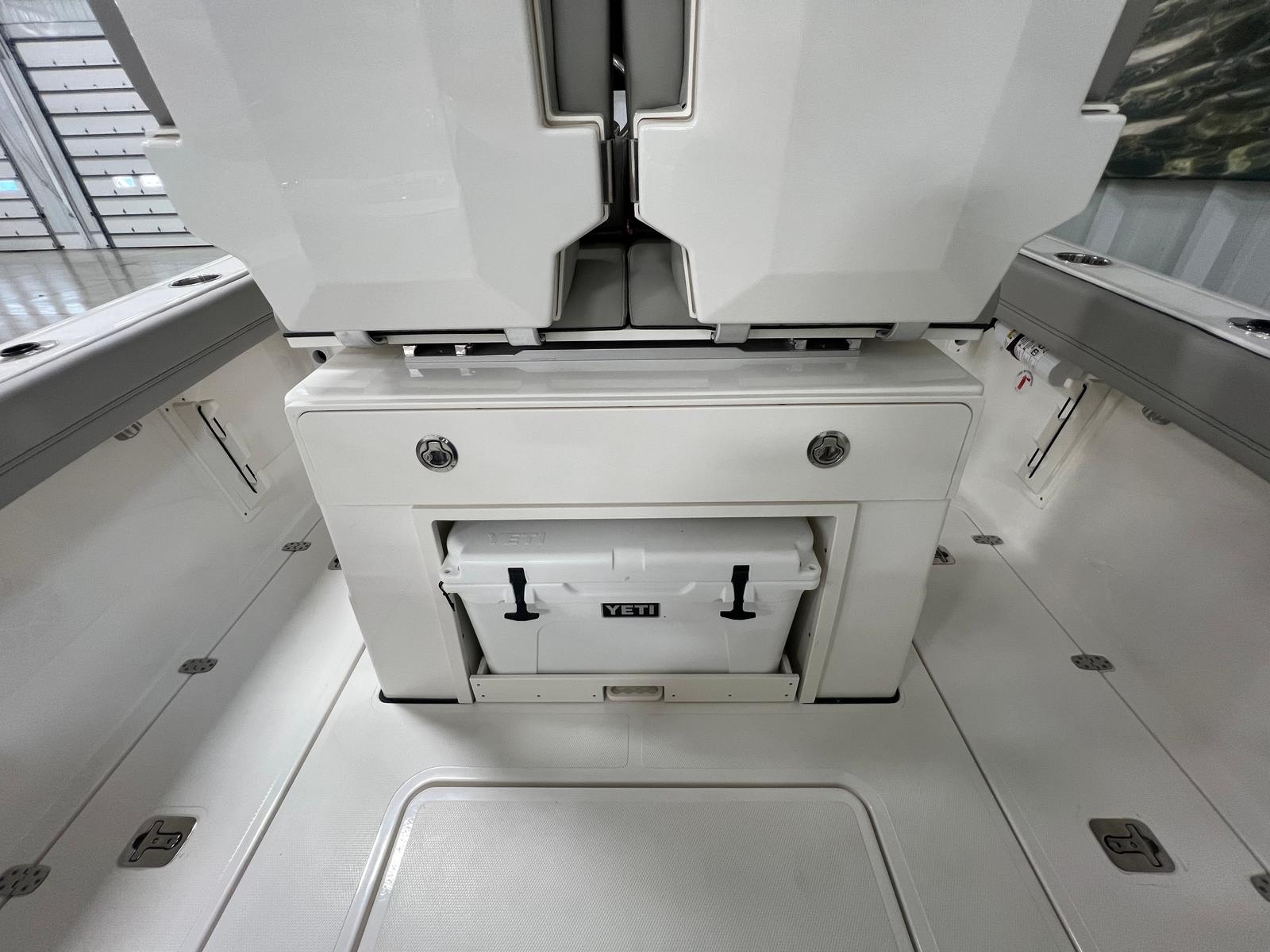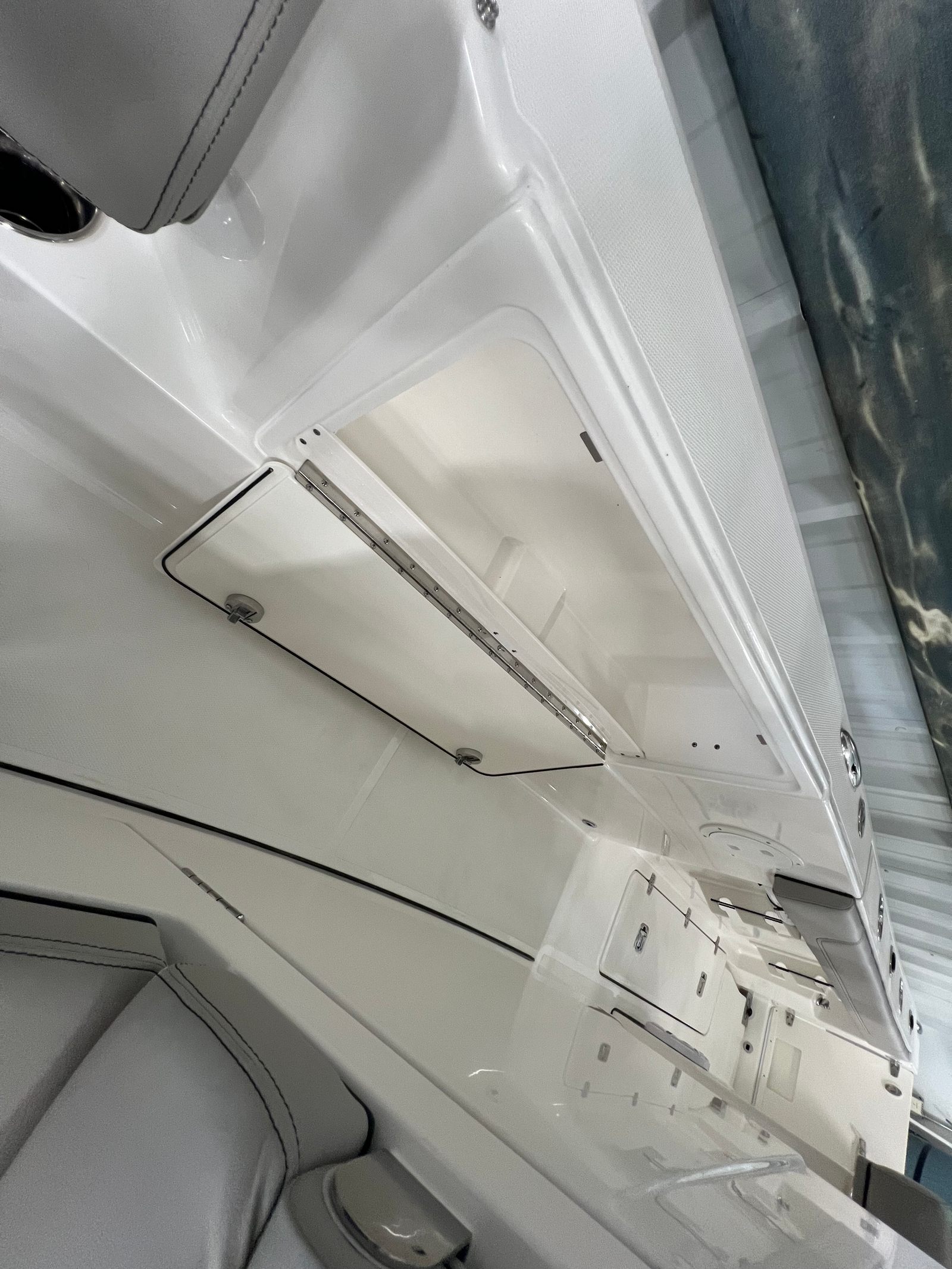 Practicality is at the core of the Pursuit 248 S Center Console’s design. The dedicated storage solutions, such as the bow seating filler compartment, help keep your gear organized and easily accessible. The fresh water system, complete with an aft cockpit shower, adds a layer of convenience for cleaning up after water activities or rinsing off salt and sand.Docking and maneuvering are made easier thanks to the boat’s responsive handling and intuitive controls. The efficient engine not only delivers impressive performance but also helps reduce fuel costs, making ownership more economical in the long run. The exterior ceramic coating minimizes maintenance, ensuring your boat looks great season after season with minimal effort.