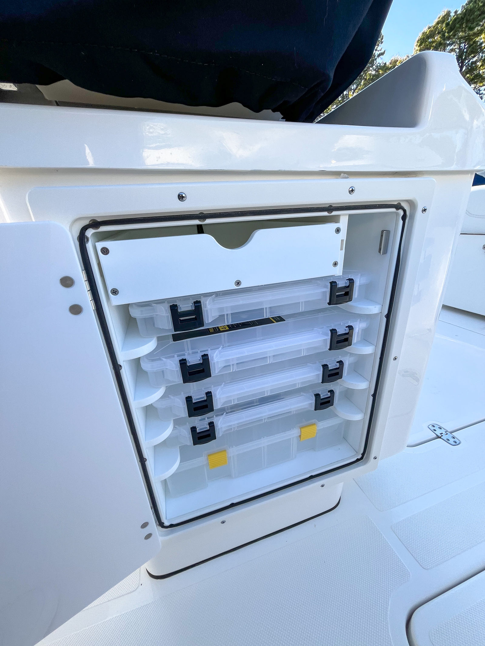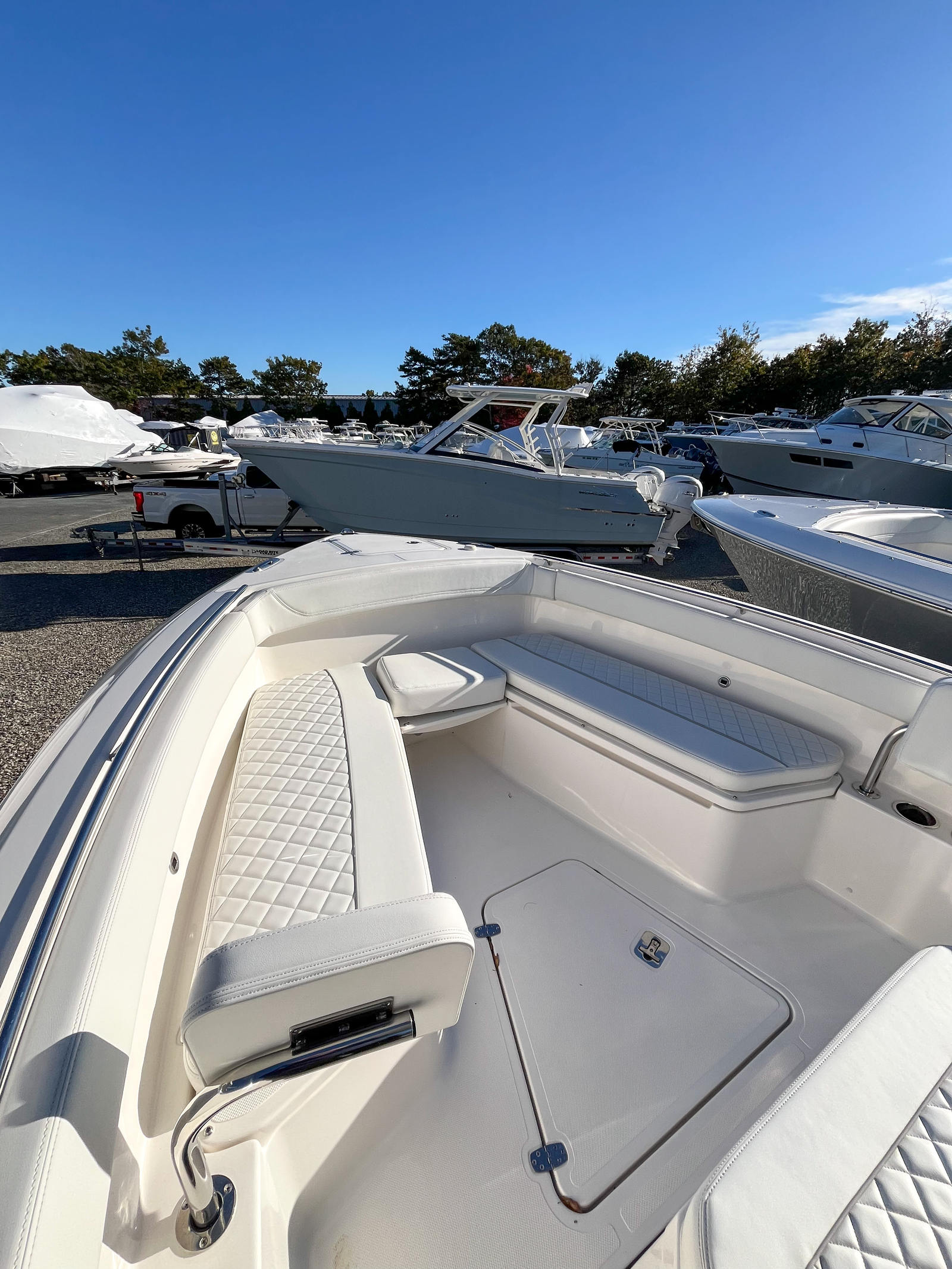 The Pursuit S 268 is loaded with premium features that elevate your boating experience. Notable highlights include FREIGHT, Captain Orientation, PDI Prep and Delivery, and an instrument cover to protect your vital controls. The bow seating area is designed for maximum comfort, featuring folding backrests on both port and starboard sides, allowing you to customize your lounging space with ease. The striking white boot stripe and quartz accents add a touch of elegance to the boat’s exterior, while the leaning post cover ensures your seating area remains protected from the elements. One of the standout features is the premium hardtop with windshield and wiper, offering superior protection from sun, wind, and spray while maintaining excellent visibility. The anchor windlass system with remote provides effortless anchoring, making it simple to secure your position whether you are fishing, swimming, or relaxing at your favorite spot. The full bottom gelcoat to keel in Sea Mist not only enhances the boat’s durability but also gives it a unique and stylish look that sets it apart from other center console boats for sale.