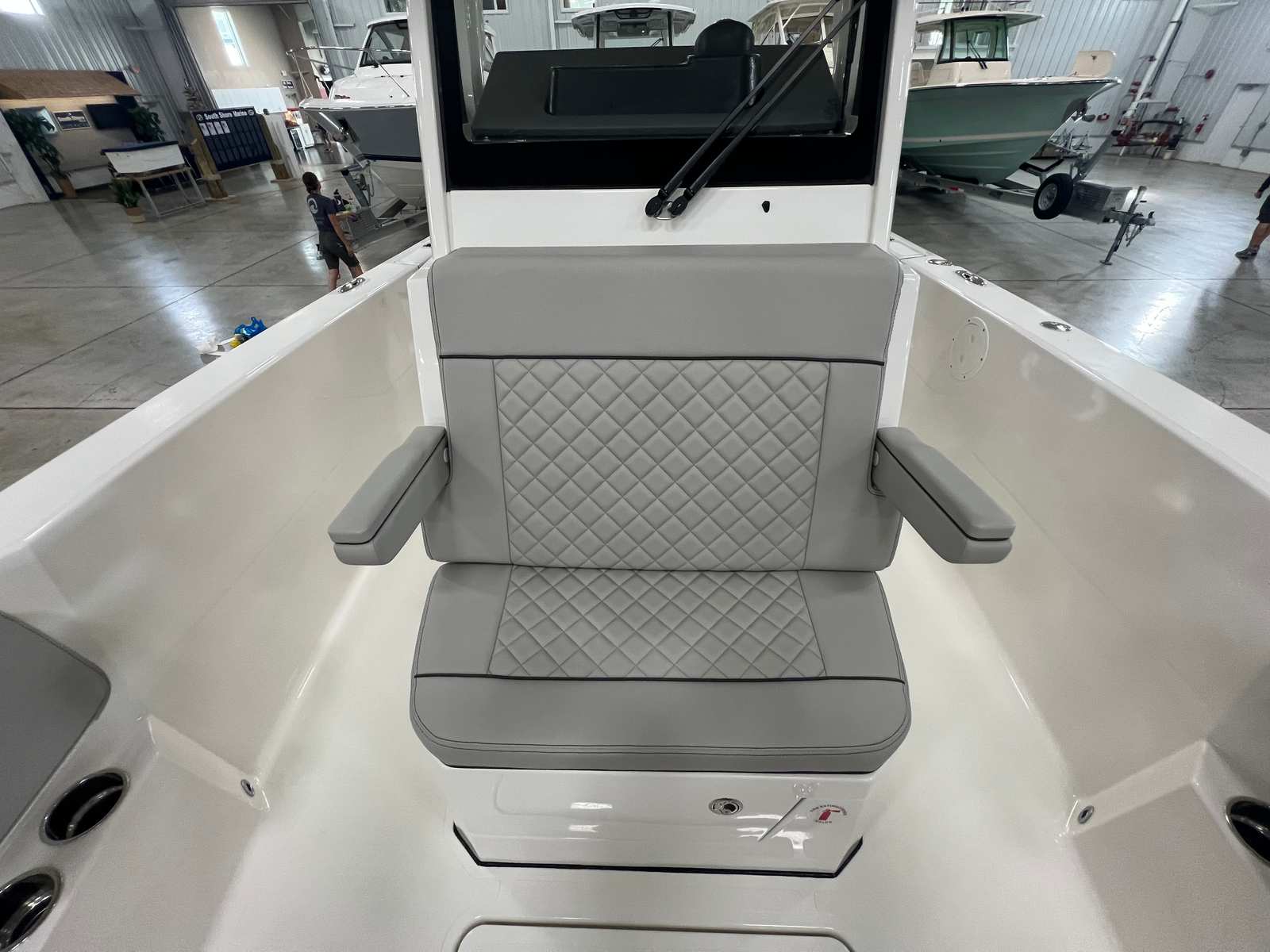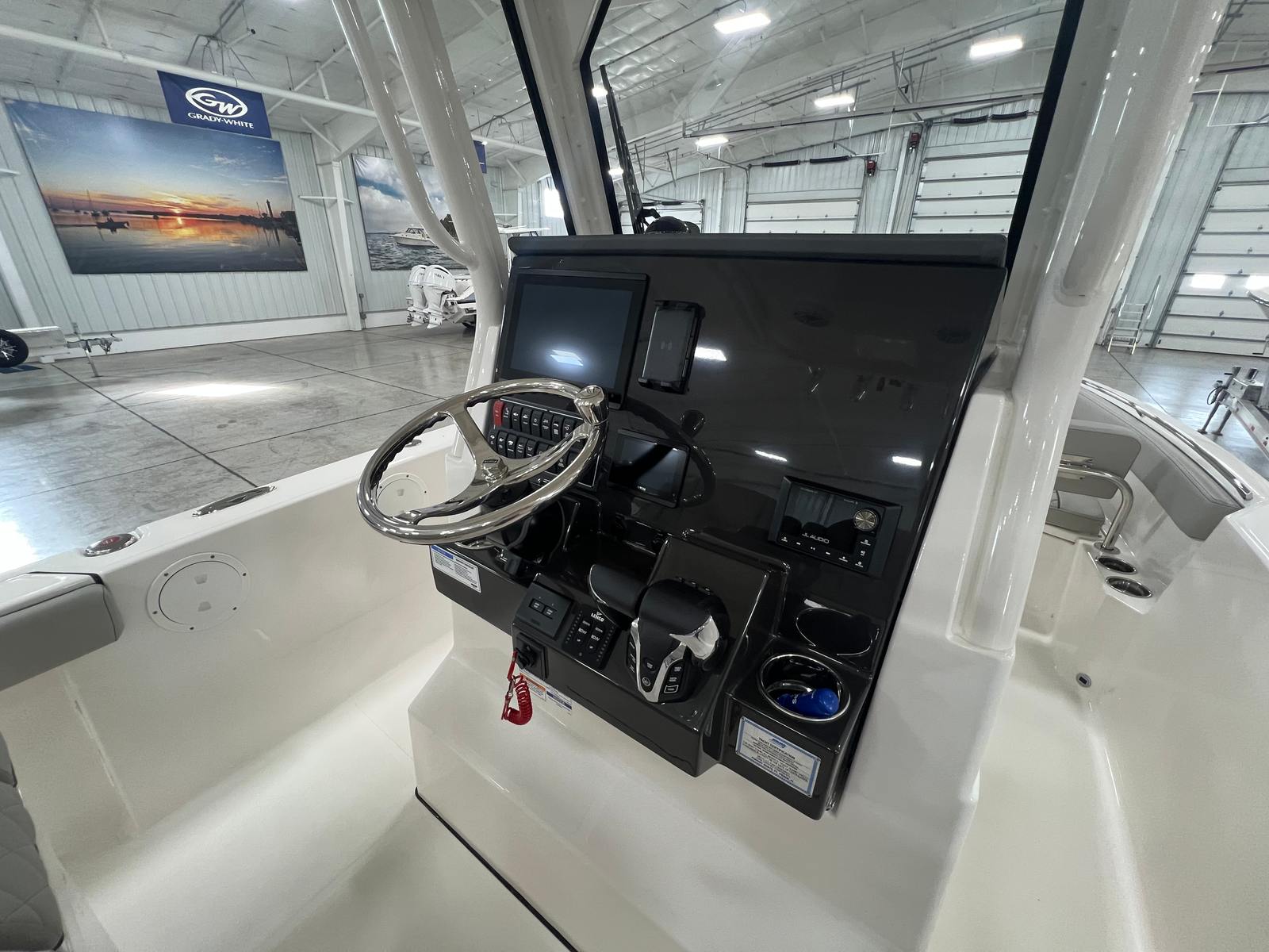 - Premium Helm Seating w/Four (4) Folding Armrests, Articulating Flip-up Bolsters, Upgraded Seat Slide with Fore/Aft Adjustments, and Edson® 316L SS Steering Wheel with Control Knob and Non-Slip Grip