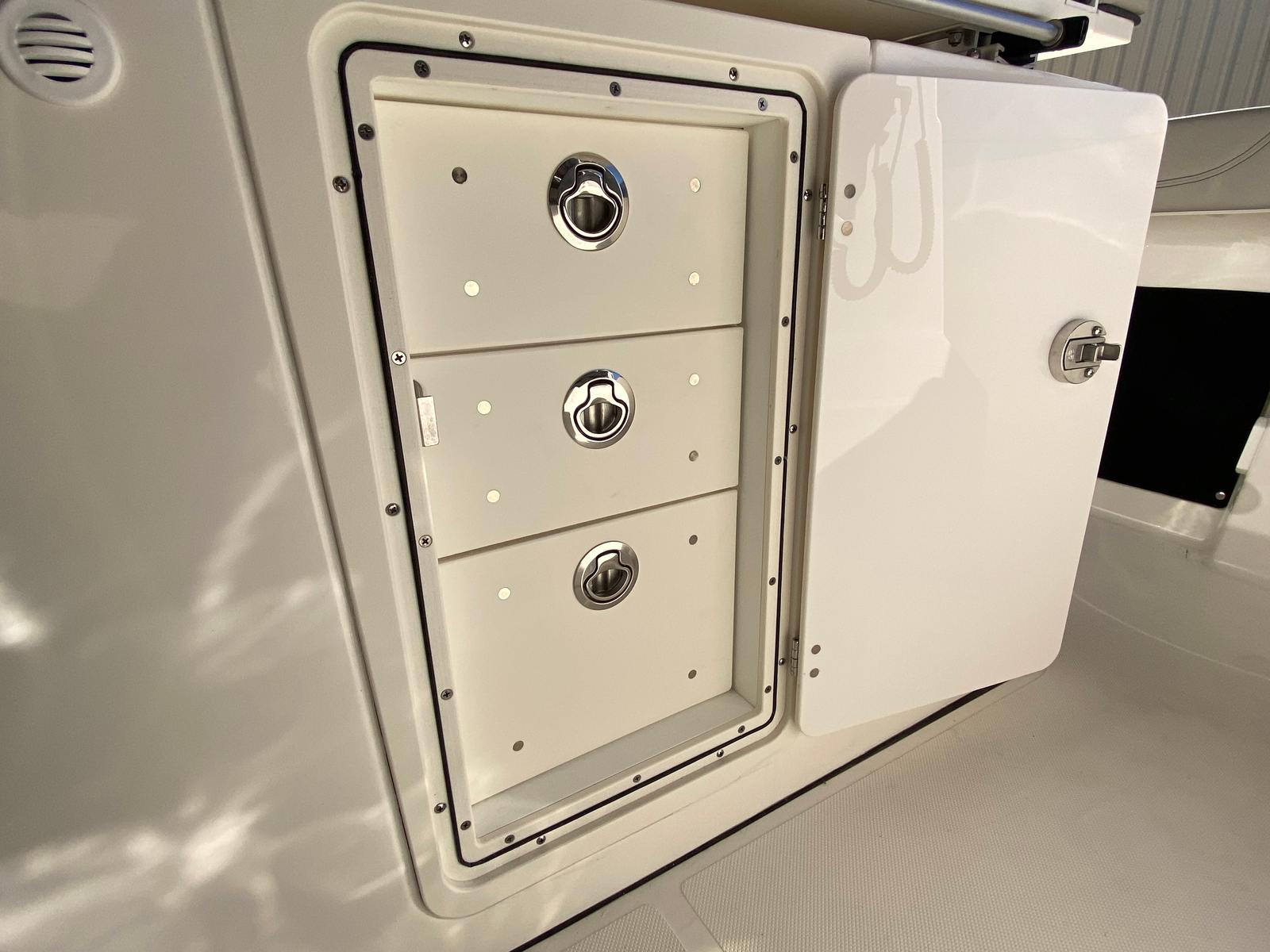 Owning the Pursuit S 288 Center Console boat means embracing a lifestyle of fun, relaxation, and adventure. The spacious layout provides plenty of room for family and friends to gather, socialize, and enjoy the water together. The comfortable seating and sunpad cushion invite you to unwind and soak up the sun, while the advanced electronics and navigation systems ensure you are always in control. The twin Yamaha engines offer the perfect balance of power and efficiency, allowing you to explore farther and faster without compromise.The Pursuit S 288 is designed for both serious anglers and leisure seekers. Its versatile deck layout accommodates fishing gear, water sports equipment, and all the essentials for a day on the water. The hullside boarding door ladder makes swimming and water activities more accessible, while the joystick control simplifies docking and maneuvering, even in challenging conditions. The blue LED accent lights add a touch of sophistication and ambiance, making every evening on board memorable.