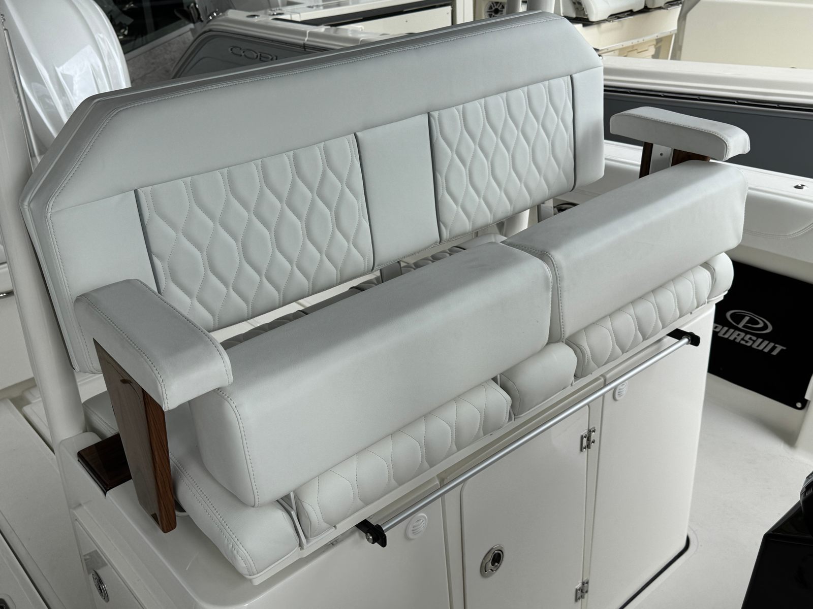 The Pursuit S 288 is as practical as it is stylish. Its 30-foot length provides ample storage for gear, supplies, and personal items, ensuring you’re always prepared for your next adventure. The integrated digital steering and joystick control make docking and maneuvering effortless, even in crowded marinas or tight spaces. Fuel efficiency is enhanced by the advanced Yamaha engines, allowing you to spend more time on the water and less time refueling. The dockside power connection supports all your electrical needs, from charging devices to powering appliances, while the manual engine flushing system simplifies maintenance and helps extend the life of your investment.