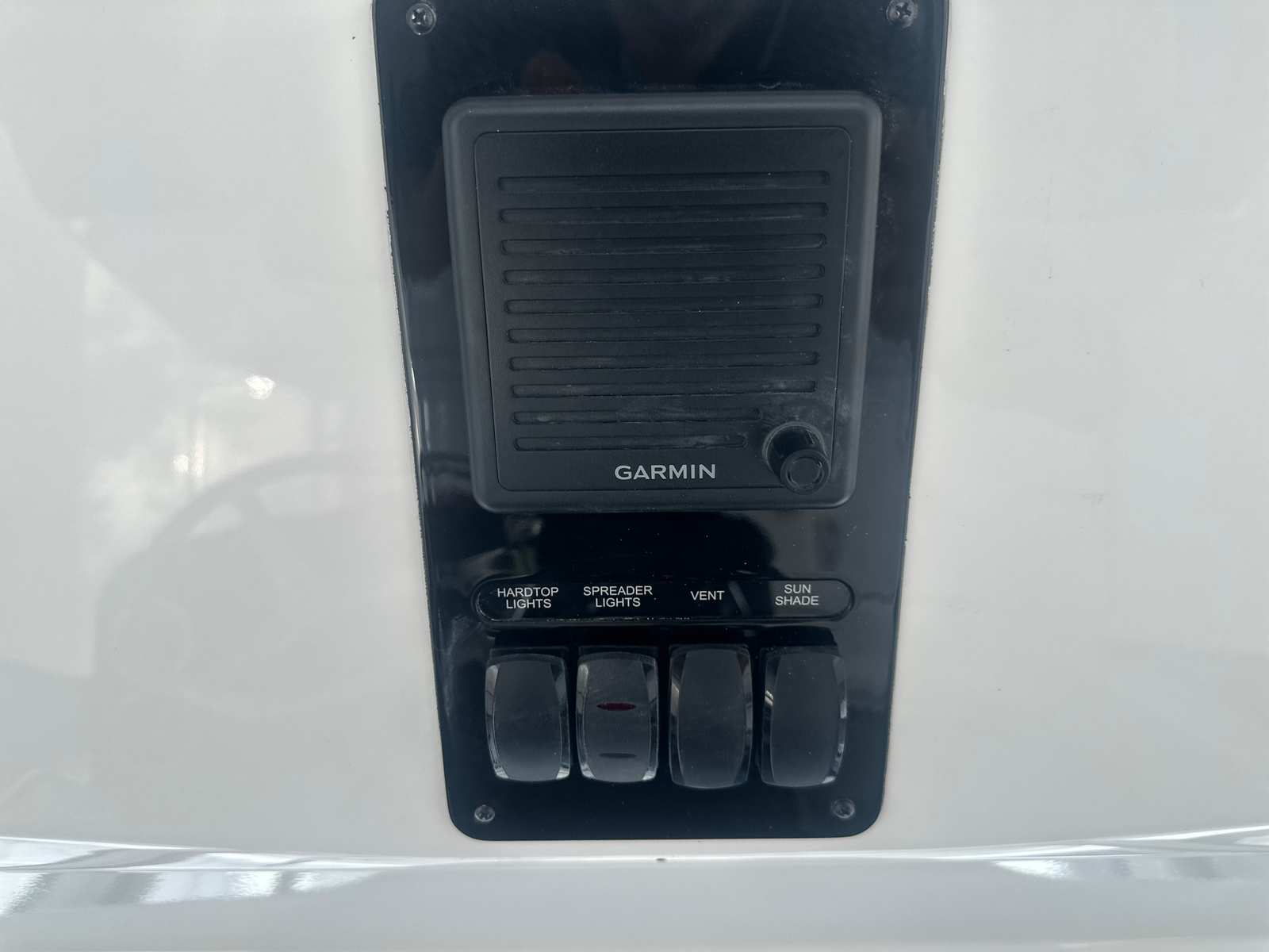 The Pursuit S 328 Center Console is loaded with premium features that elevate your boating experience. The Seakeeper Gyro Stabilization System dramatically reduces roll, providing unmatched stability and comfort even in choppy conditions. The helm console, finished in a sophisticated Carbon color, is complemented by a Fresh White hardtop liner, creating a clean and modern aesthetic. Inside, the Tranquil Sea Interior Package offers a serene and inviting atmosphere, perfect for relaxing after a day of adventure. The inclusion of a diesel genset and cabin air conditioning ensures that you and your guests stay comfortable, no matter the weather or time of day. Every detail of the S 328 is crafted to enhance your enjoyment and make every outing memorable.