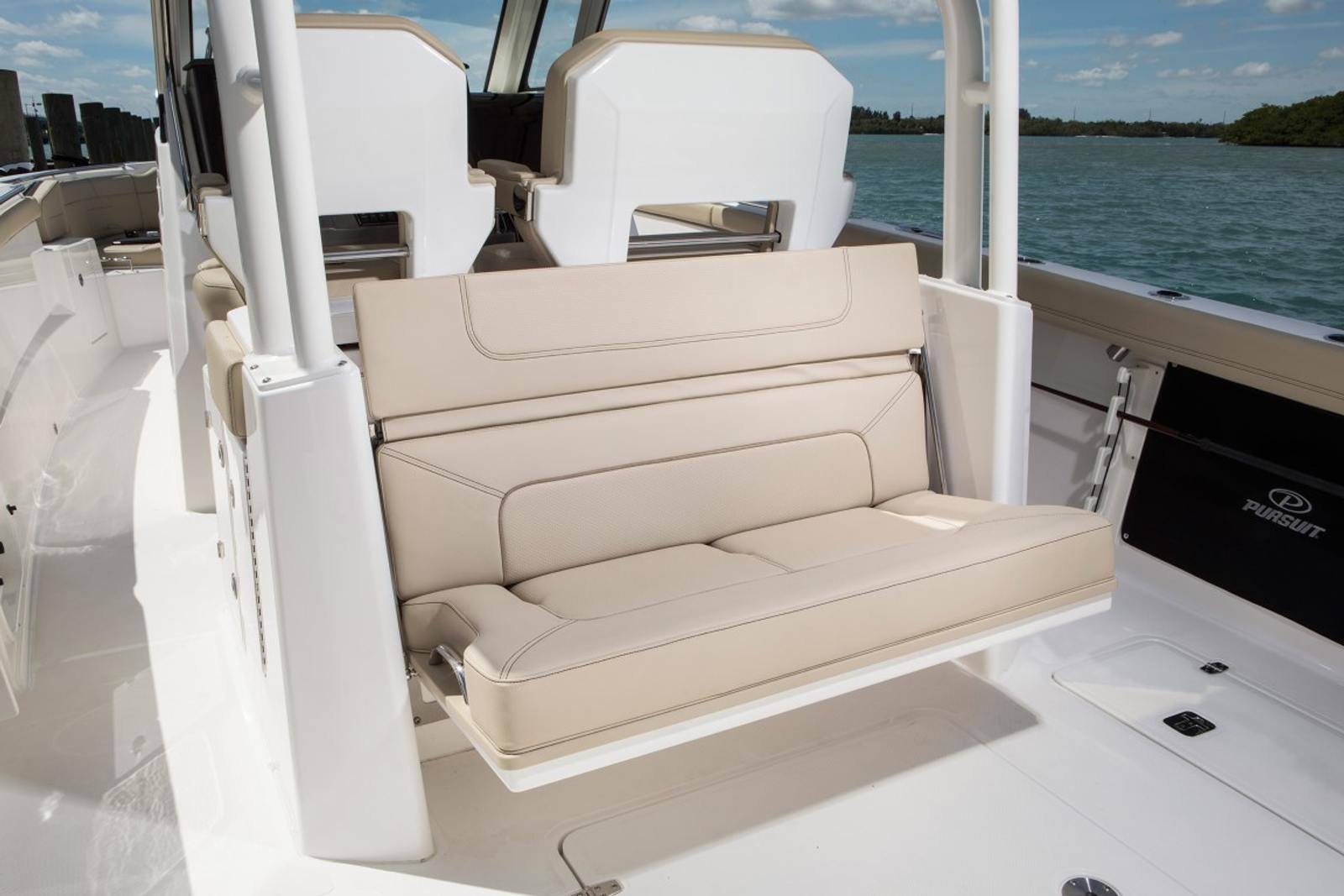 At the heart of this Pursuit S 328 Center Console are twin Yamaha Digital F350 V6 Offshore engines in Pearlescent White, delivering a combined 700 horsepower. These engines are equipped with Integrated Digital Electric Steering (DES) and Helm Master EX Digital Electronic Control (DEC), providing precise handling and effortless control at any speed. The inclusion of Yamaha Joystick Control with Full Maneuverability, Set PointTM, and Autopilot features ensures docking and navigation are smooth and stress-free, even in challenging conditions. The Multifunction Display Interface keeps you informed and in command, while the manual engine flushing system helps maintain peak performance and longevity.