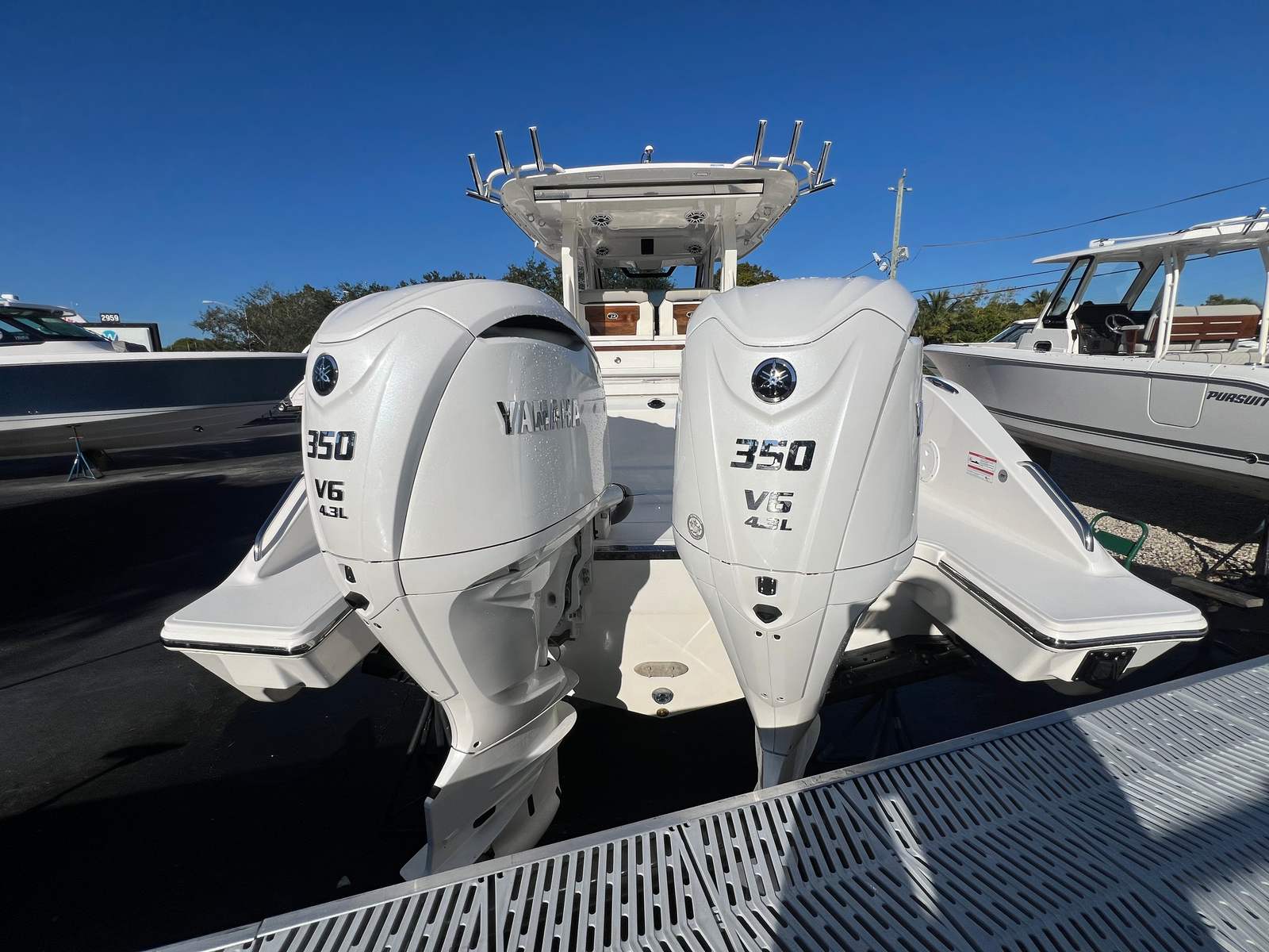Practicality is at the core of the Pursuit S 328 Center Console’s design. The joystick control system simplifies docking and close-quarters maneuvering, making it easy to handle even in challenging conditions. The spacious layout provides ample storage for gear, supplies, and personal items, ensuring you’re always prepared for a day on the water. The efficient twin Yamaha F350 engines offer impressive fuel economy for their class, allowing you to explore farther without frequent refueling stops.The cockpit refrigerator and grill add a new level of convenience, enabling you to store fresh ingredients and prepare meals without leaving the boat. The air-conditioned cabin offers a comfortable retreat from the sun, making it ideal for longer trips or overnight stays. Whether you’re heading out for a quick afternoon cruise or planning an extended adventure, the Pursuit S 328 makes every aspect of boat ownership easier and more enjoyable.