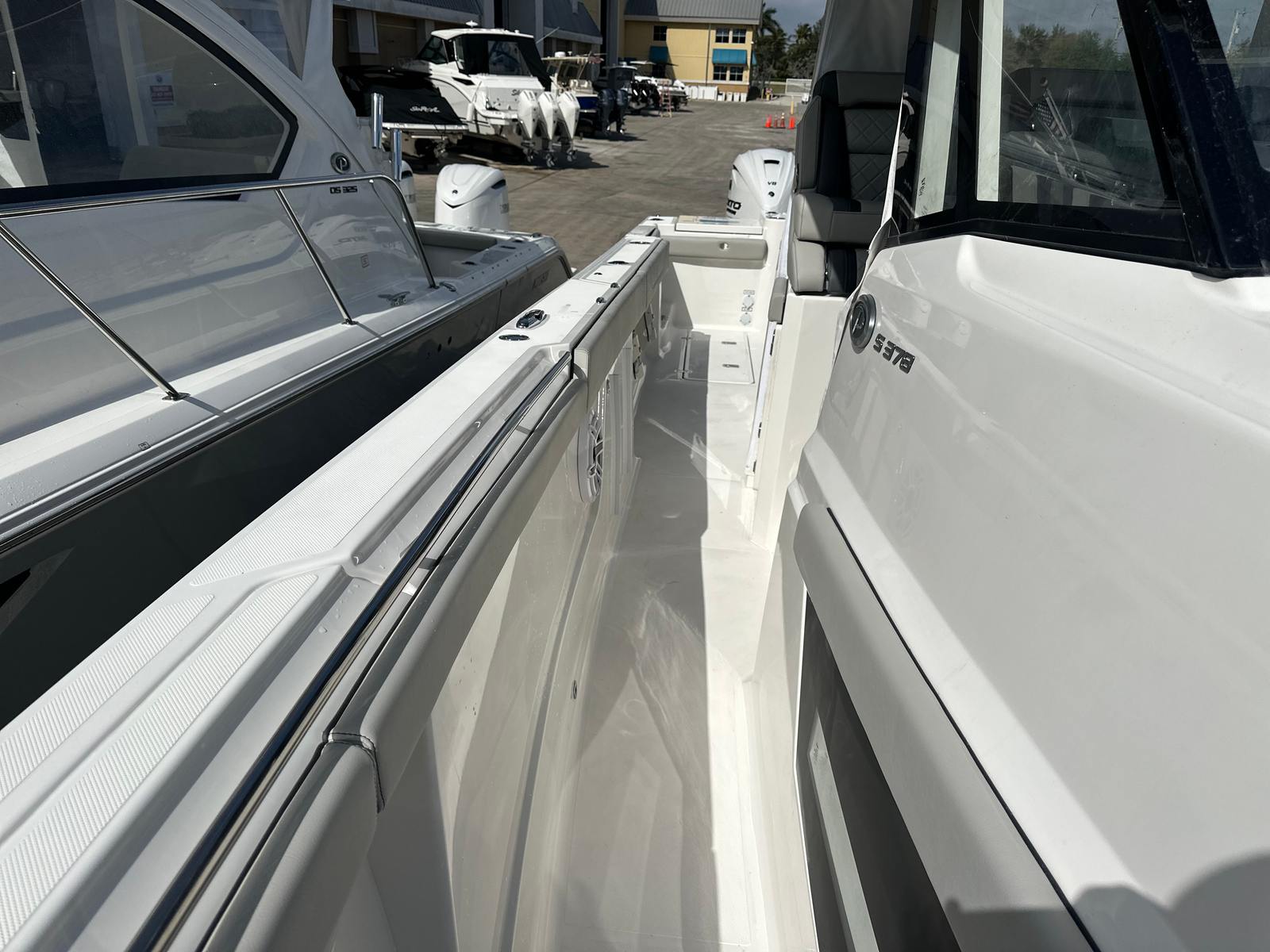 The 2025 Pursuit S 378 center console is a remarkable vessel, measuring just over 40 feet in length. This new model stands out with its sleek lines, modern profile, and attention to detail, making it a head-turner at any marina or on open water. The S 378 is built to Pursuit’s exacting standards, ensuring durability, safety, and a smooth ride in a variety of conditions. Its spacious layout offers ample room for entertaining, fishing, or simply relaxing with friends and family, making it one of the most versatile center console boats for sale today.