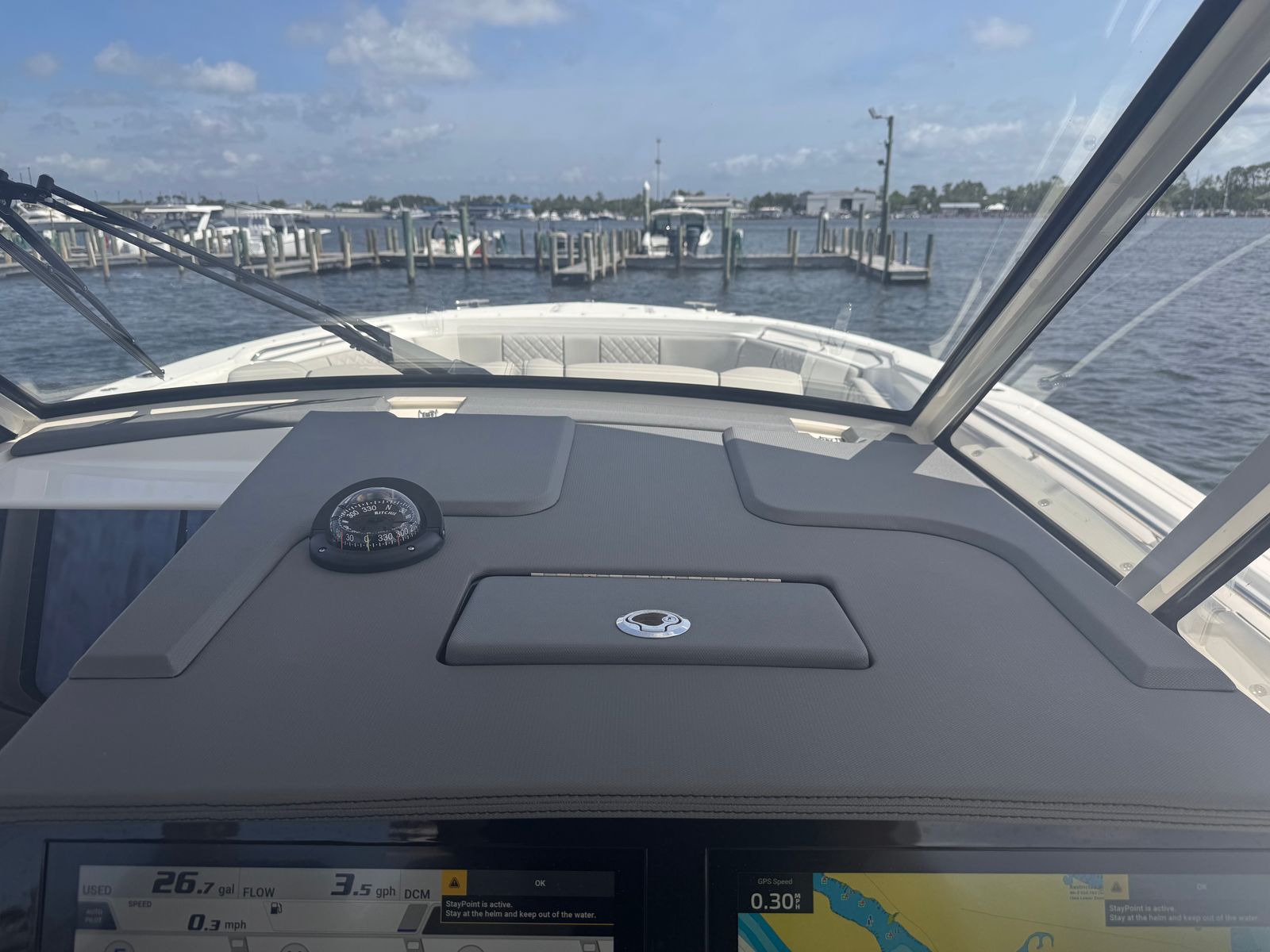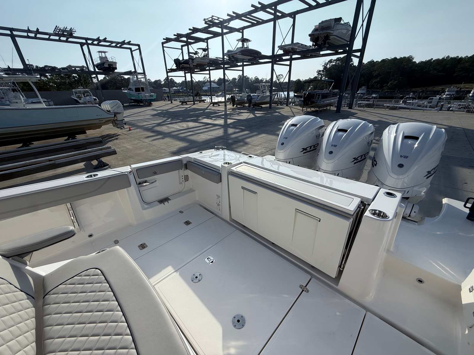 The Pursuit S 378 is designed with practicality in mind, offering features that make ownership both enjoyable and hassle-free. The spacious deck provides ample room for storing gear, coolers, and personal items, keeping the boat organized and clutter-free. Docking is simplified by the boat’s responsive handling and thoughtful layout, allowing for easy maneuvering in tight spaces.Fuel efficiency is a hallmark of the S 378’s triple-engine configuration, ensuring that you can spend more time on the water and less time refueling. The durable composite decking and high-quality upholstery materials are easy to clean and maintain, preserving the boat’s pristine appearance over time. With advanced weather monitoring and customizable sun protection, you can confidently plan outings in a variety of conditions, knowing that your boat is equipped to handle whatever comes your way.