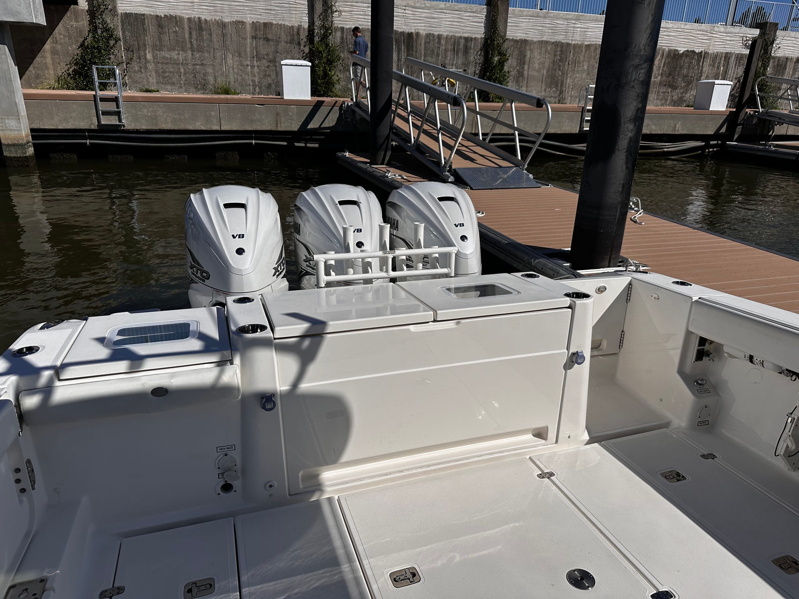 Practicality is at the heart of the Pursuit S 378’s design. The ample storage options ensure that you have plenty of space for fishing gear, water toys, and personal belongings, keeping the deck clutter-free and organized. The Center Console layout makes docking and maneuvering straightforward, whether you are pulling into a busy marina or anchoring in a secluded cove. The triple engine setup not only provides outstanding performance but also contributes to fuel efficiency when cruising at optimal speeds.Maintenance is simplified thanks to Pursuit’s commitment to quality engineering and accessible systems. The used condition of this 2021 model means you can enjoy all these benefits at a more attractive price point, making it a smart investment for those seeking a high-end Center Console boat for sale.