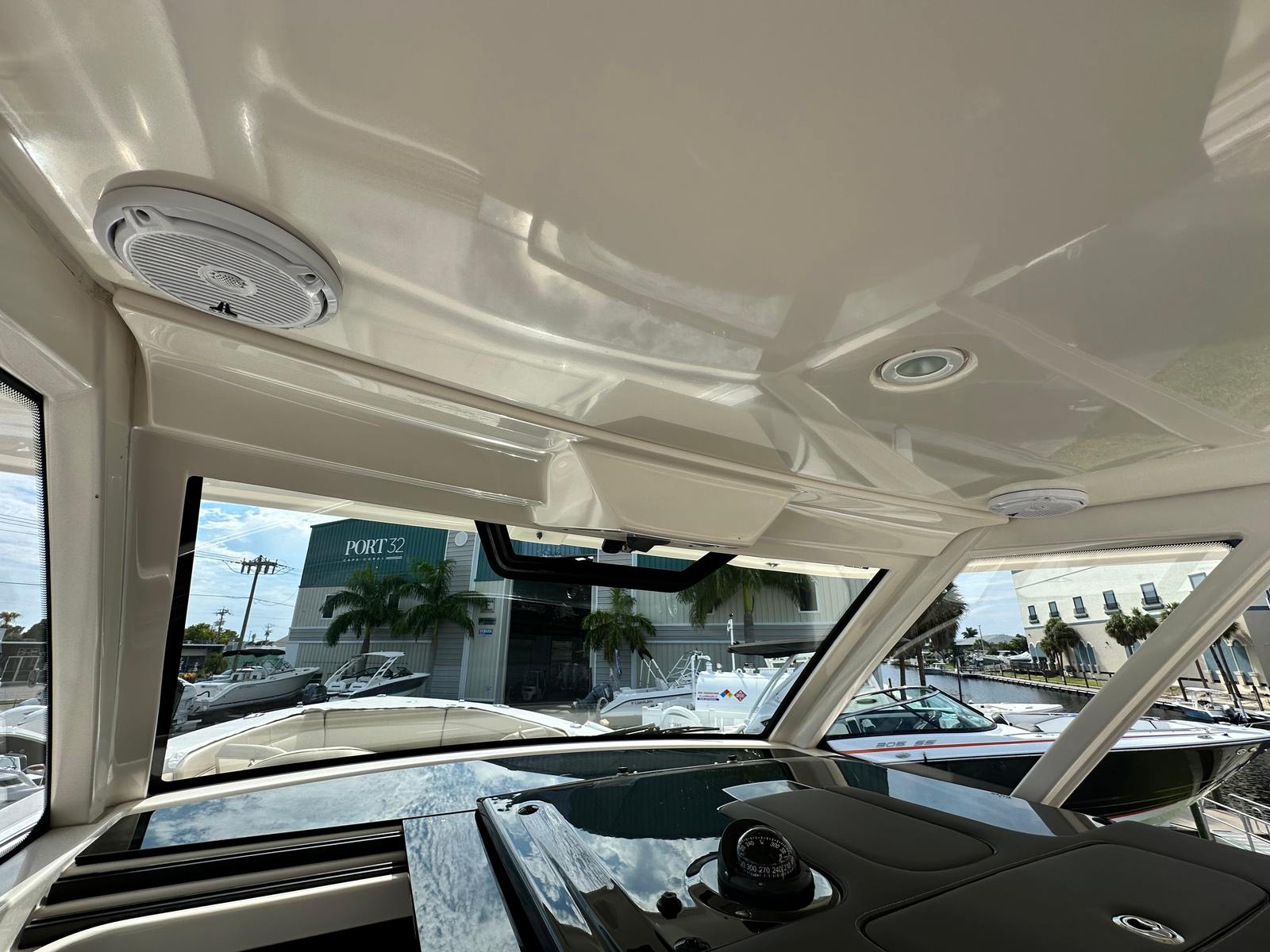 Under the hood, the Pursuit S 408 is powered by three engines, delivering a combined 1,050 horsepower. With only 480 engine hours, these motors promise plenty of life and reliable operation for future excursions. The triple-engine setup ensures impressive acceleration, smooth cruising, and the ability to reach your favorite destinations quickly and efficiently. Whether you’re navigating open waters or maneuvering through tight channels, the Pursuit S 408’s power and agility make every trip exhilarating. The responsive handling and robust horsepower are perfect for those who crave speed and precision on the water.