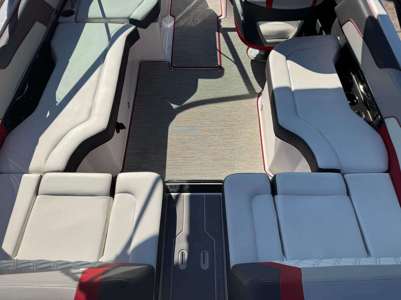At the heart of the Regal 2300 RX is a single, robust engine delivering an impressive 300 horsepower. This powerful setup ensures exhilarating acceleration and smooth cruising, whether you’re towing water toys, slicing through choppy waves, or simply enjoying a leisurely ride. The engine’s low hours are a testament to its longevity and reliability, providing peace of mind and plenty of adventures ahead. The performance of this bowrider boat for sale is further enhanced by Regal’s innovative hull design, which delivers a stable, responsive ride and excellent fuel efficiency.