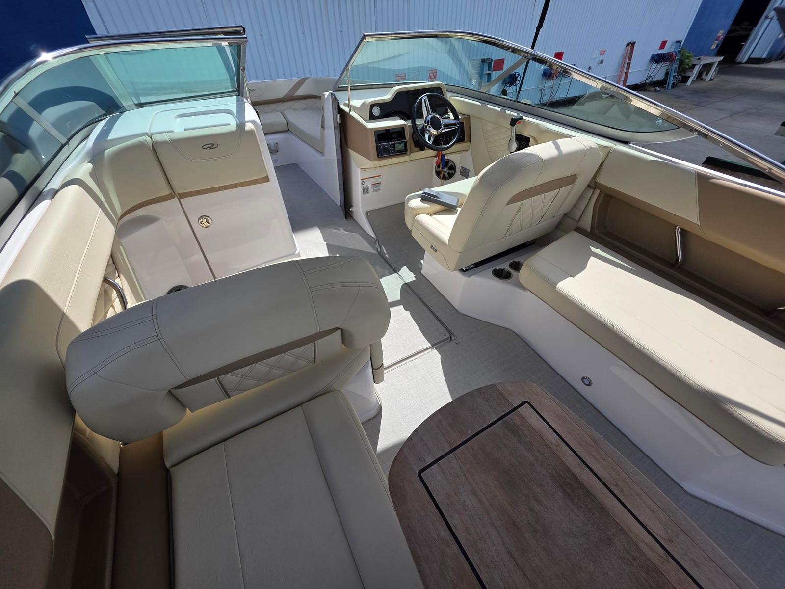 The helm is designed with the captain in mind, featuring an ergonomic layout and premium electronics that make navigation simple and enjoyable. A Garmin GPSMap XS system provides advanced navigation, chart plotting, and situational awareness, ensuring you’re always in control on the water. An auto trim tabs controller further enhances performance by automatically optimizing the boat’s running angle for a smoother, more efficient ride in varying conditions.