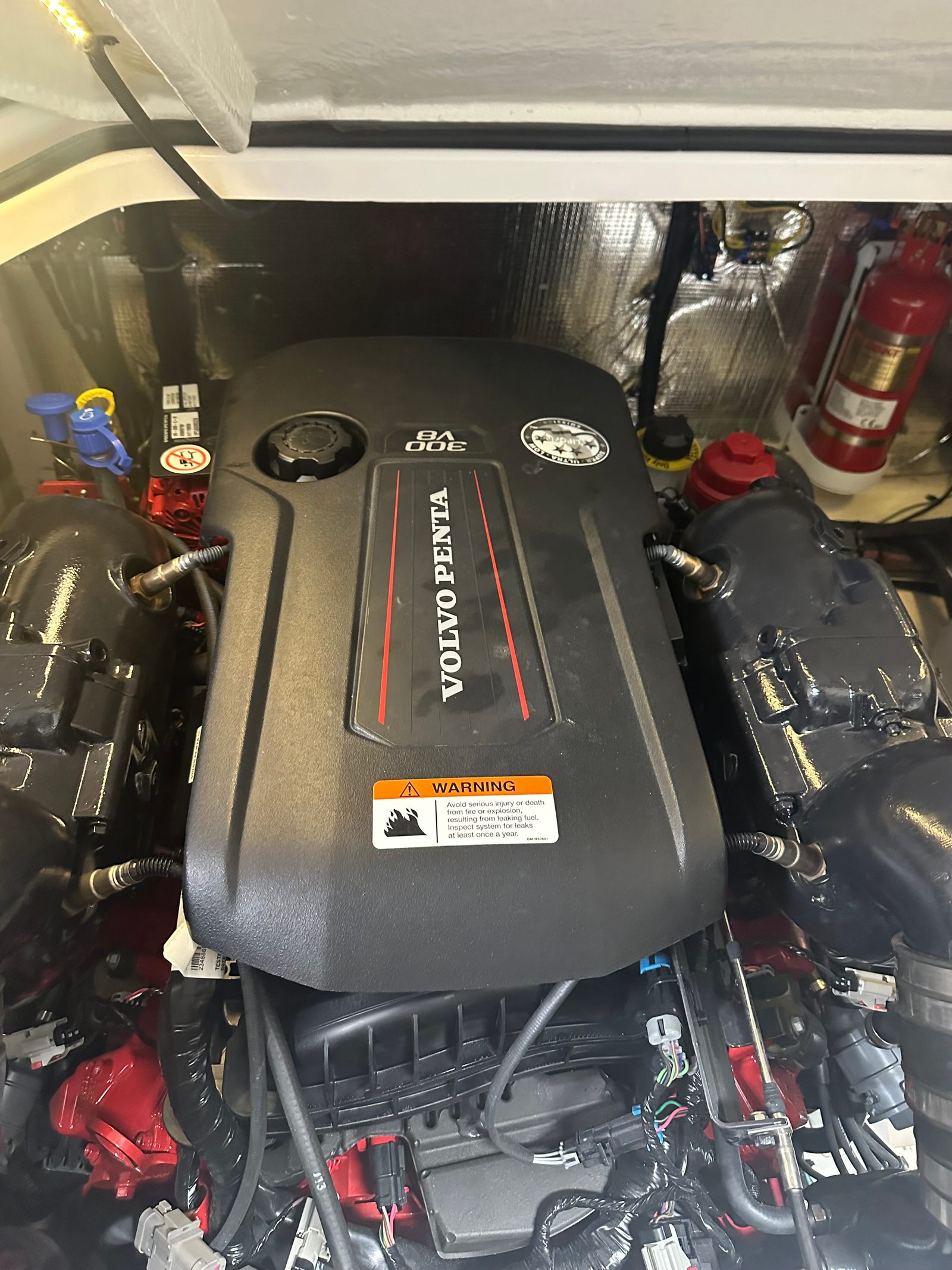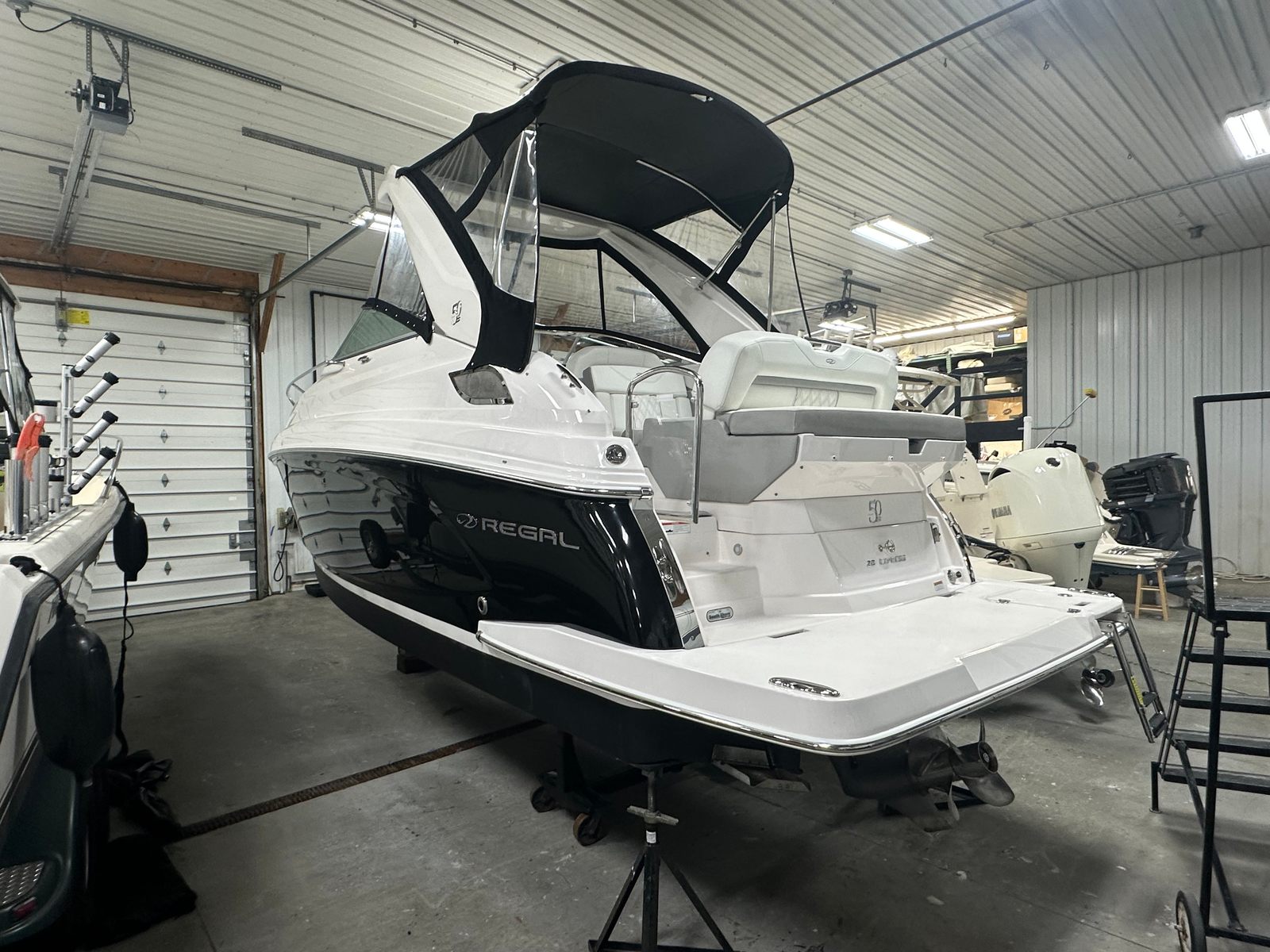 The Regal 28 Express is as practical as it is luxurious. With its efficient single engine and 300 horsepower, you’ll appreciate the balance between performance and fuel economy, making longer trips more affordable. The bow thruster simplifies docking, so you can confidently navigate tight spaces and busy marinas. The two batteries and battery charger provide peace of mind, ensuring your electronics and amenities stay powered throughout your adventures.Cockpit storage keeps your gear organized, whether you’re packing for a day of water sports or a weekend getaway. The cabinetry offers additional space for personal items, making overnight stays comfortable and convenient. The camper enclosure protects you from unexpected weather, while the Sea Grass Snap In carpet is easy to clean and maintain, keeping your boat looking its best season after season.