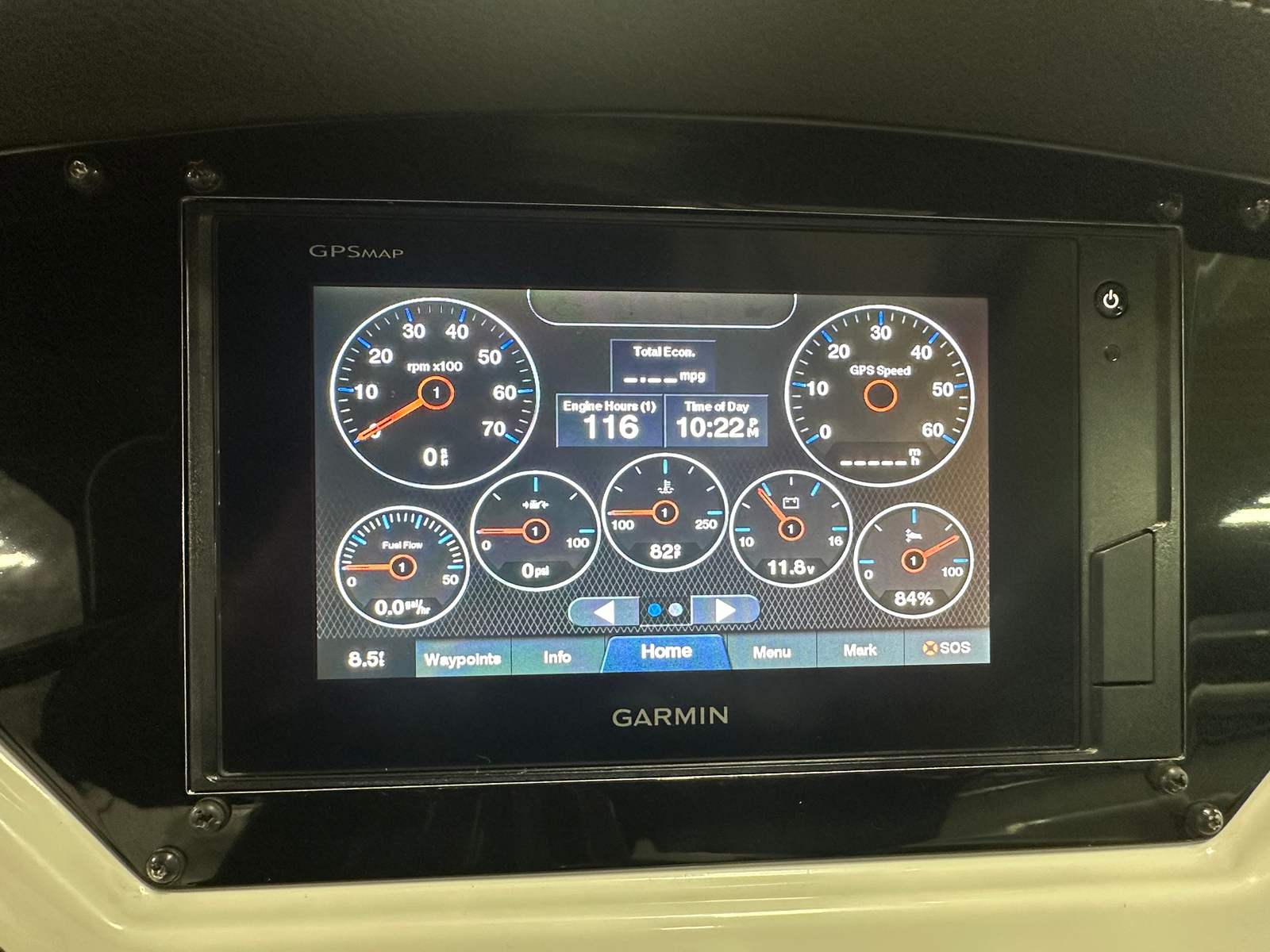 Powering the Regal 28 Express is a robust single engine with 300 horsepower and just 116 engine hours, offering reliable performance and efficiency. This configuration ensures smooth acceleration, responsive handling, and the ability to cruise comfortably at various speeds. Whether you’re navigating open waters or docking at your favorite waterfront restaurant, the Regal 28 Express delivers a confident and enjoyable ride. The bow thruster adds an extra layer of control, making docking and close-quarters maneuvering effortless, even for those new to boating.