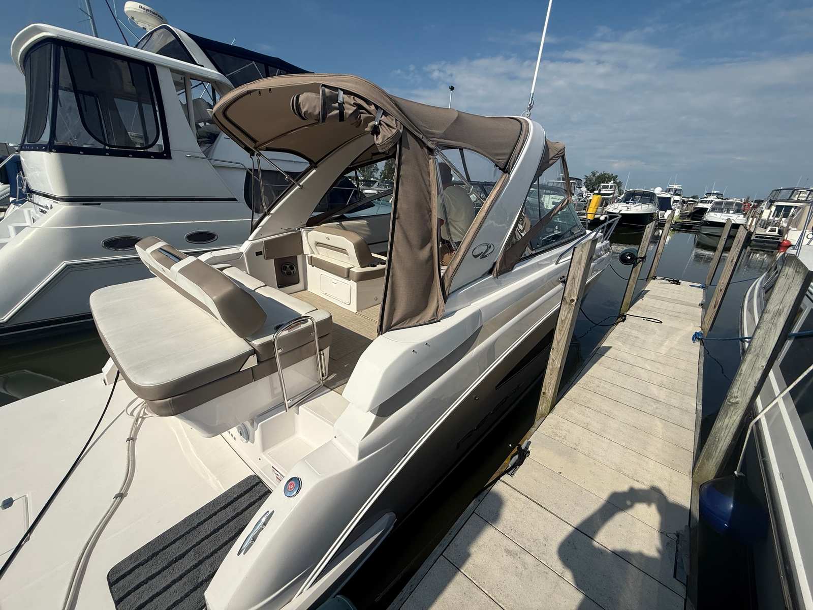 The Regal 32 Express is designed with practicality in mind, making ownership as enjoyable as it is rewarding. The bow thruster simplifies docking and close-quarters maneuvering, reducing stress and increasing confidence for captains of all experience levels. The battery charger ensures your onboard electronics and systems are always ready for action, while the protective bottom paint extends the life of your hull and reduces maintenance needs.Storage solutions throughout the boat allow you to bring along all the gear and supplies you need for a day on the water or a weekend getaway. The efficient design of the cockpit and cabin maximizes usable space, providing plenty of room for relaxation, dining, and entertainment. Whether you are planning a quick afternoon cruise or an extended voyage, the Regal 32 Express is equipped to handle it all with ease.