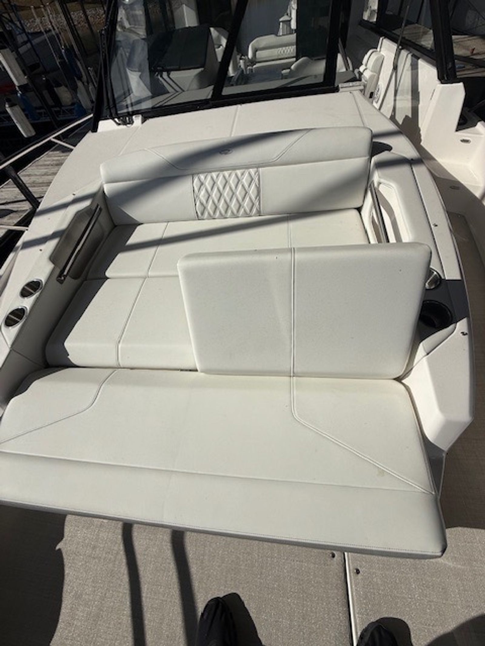 Twin Volvo V8 350 DP engines deliver smooth handling, strong acceleration, and confident maneuverability—perfect for both cruising open waters and docking in tight spaces. With only 126 engine hours, you’ll enjoy reliable performance and peace of mind for seasons to come.