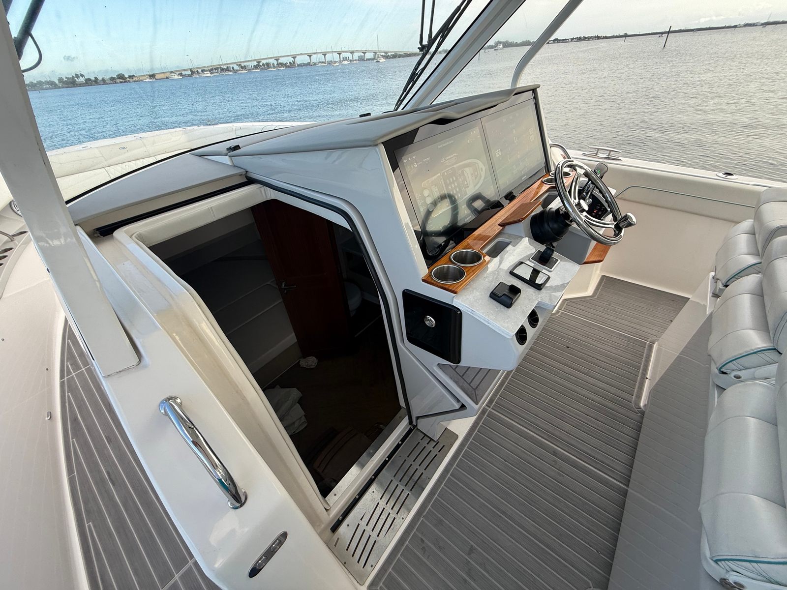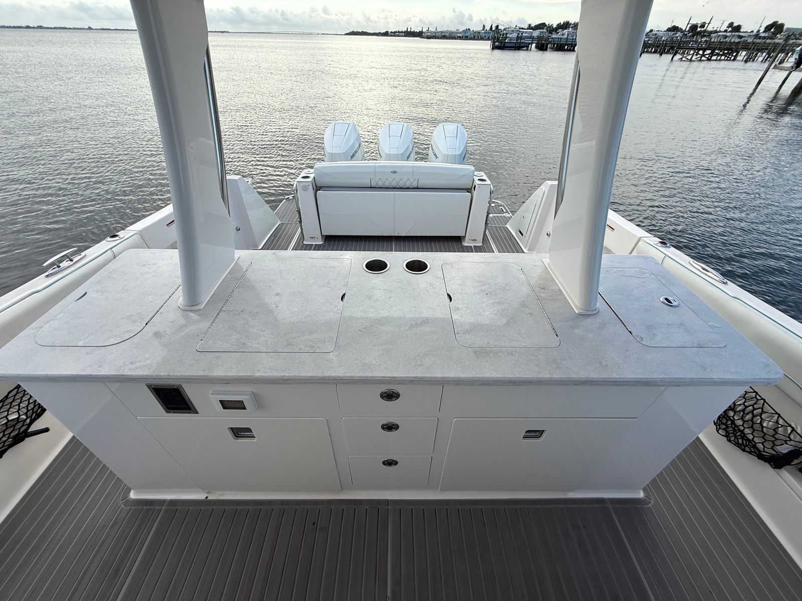 ** PRICE REDUCED, MIAMI BOAT SHOW SPECIAL ** TRIPLE MERCURY 400 V10 | (610) CURRENT HOURS |(2) YEARS OF MERCURY WARRANTY REMAINING | HULL COLOR - WHITE | BOOTSTRIPE COLOR - BIMINI BLUE | INTERIOR COLOR - TITANIUM WITH BIMINI BLUE ACCENTS | DUAL GARMIN 8622 PLOTTERS | B60 TRANSDUCER | GARMIN 4' OPEN ARRAY RADAR | GARMIN 110 VHF | DIGITAL SWITCHING |UPGRADED JL AUDIO STEREO PACKAGE | FLIR M232 PAN & TILT THERMAL CAMERA | SEAKEEPER 3 STABILIZER | POWER BANK BATTERY SYSTEM (NO GENERATOR) | MAKEFAST RETRACTABLE HARDTOP SHADE | KVH 5 SATELITE TV | BOW TRUSTER | DEEP DROP OUTLETS | REMOVABLE ROCKET LAUNCHER | FISH PACKAGE | WINDLASS ANCHOR | FENDER CLIPS | OUTRIGGERS | COCKPIT TV | MID CABIN TV | BOW & COCKPIT COVERS | MANUAL BOW & COCKPIT SUNSHADE SYSTEM | TOILET - OVERBOARD DISCHARGE | SALES CONTACT - CHRIS FRAMBES 772.528.0840