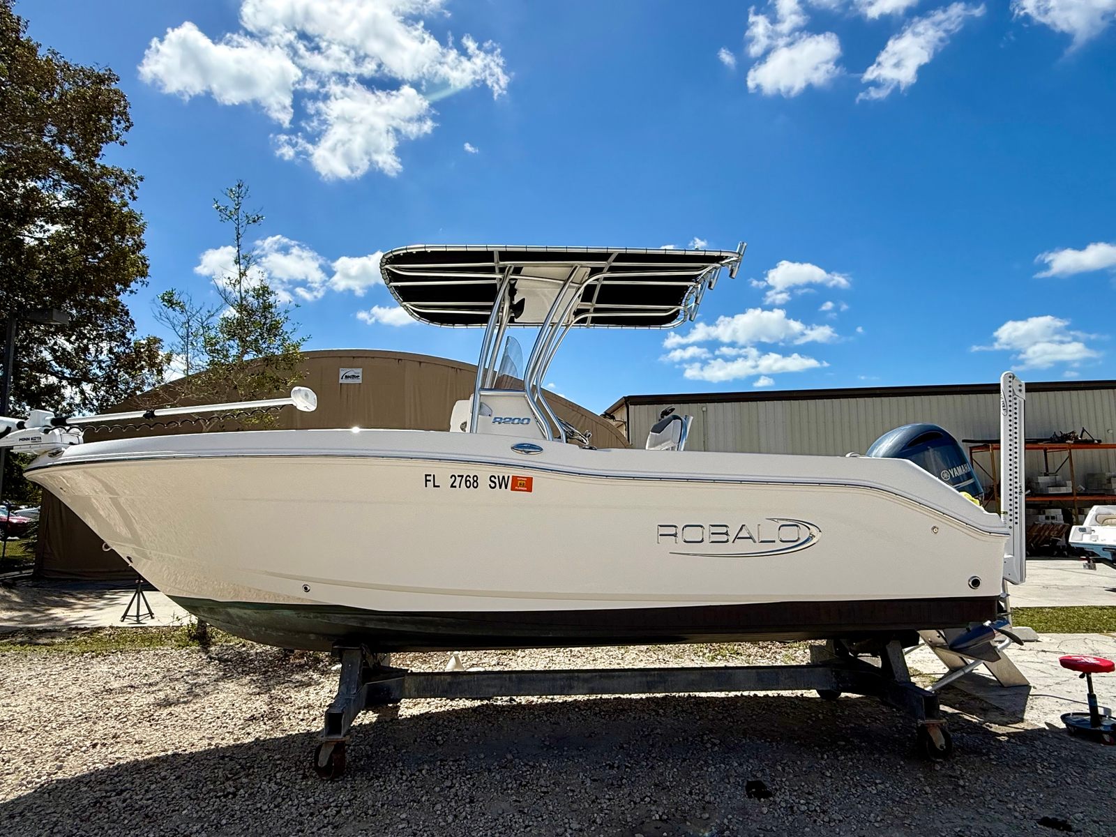 The 2021 Robalo R200 is a 21-foot center console boat designed for those who demand reliability and versatility on the water. With its sleek lines and robust construction, this Robalo boat for sale is built to handle a variety of conditions, making it perfect for coastal cruising, inshore fishing, or simply relaxing with friends and family. The R200’s length offers ample space for passengers and gear, while its thoughtful layout ensures everyone on board enjoys a comfortable and safe ride.