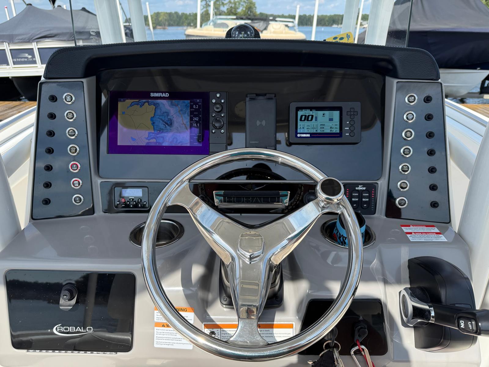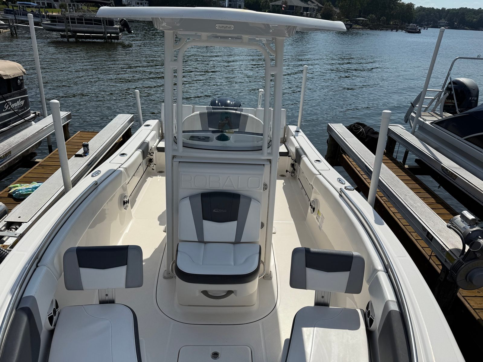 The Robalo 230 CC is designed with both functionality and comfort in mind. Its Center Console layout provides unobstructed access around the deck, making it easy to move from bow to stern. The spacious cockpit offers plenty of room for casting lines, relaxing with friends, or enjoying the view. The boat’s 23-foot length strikes the perfect balance between stability and agility, ensuring a smooth and enjoyable ride.Special features of the Robalo 230 CC include a well-designed helm station with intuitive controls, ample storage compartments for gear and personal items, and comfortable seating for passengers. The boat’s durable construction and quality materials ensure long-lasting performance and low maintenance, making it a smart investment for any boating enthusiast.