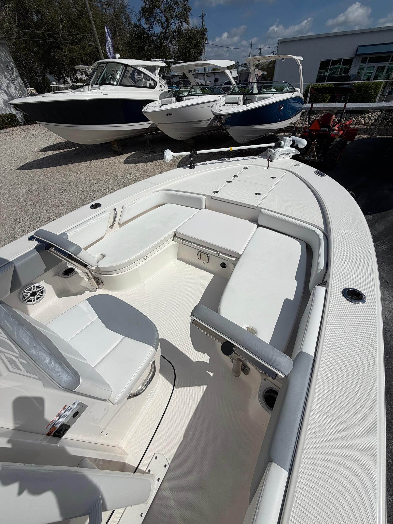 The Robalo 246 SD is packed with features that enhance both its functionality and comfort. Its 24.5-foot length provides ample space for family and friends, making it ideal for social gatherings and group adventures. The bay boat’s design maximizes deck space, allowing for easy movement and plenty of room for fishing, lounging, or entertaining.Special features of the Robalo 246 SD include a thoughtfully designed helm with intuitive controls, comfortable seating arrangements, and ample storage compartments for all your gear. The boat’s layout is optimized for versatility, catering to a wide range of activities, from casting lines to relaxing in the sun. The high-quality construction and attention to detail ensure durability and a premium on-water experience.