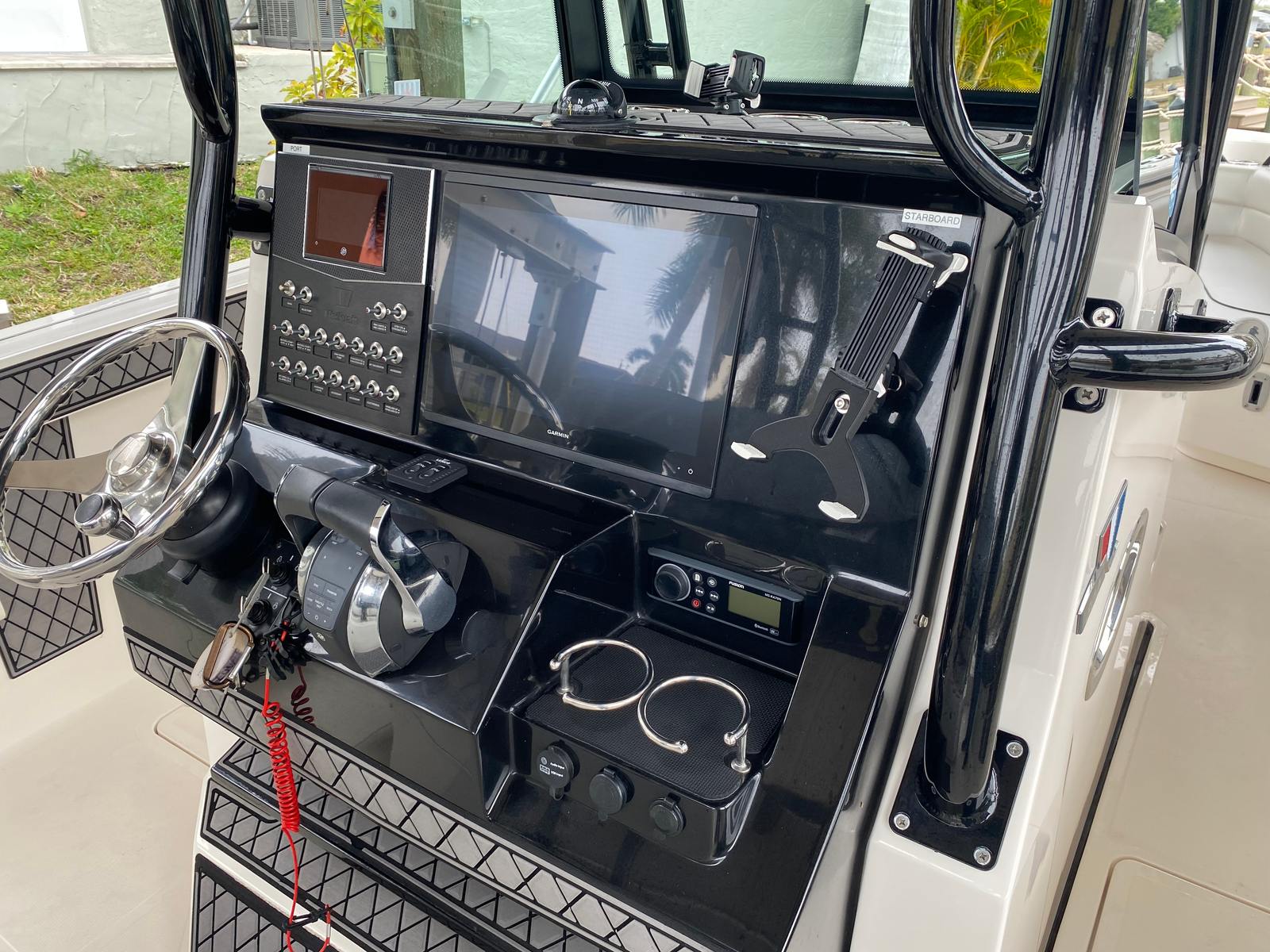 When it comes to performance, the Scarab 302 Fisherman truly shines. Equipped with twin engines delivering a combined 700 horsepower, this Center Console boat is built for speed and agility. The engines have only 350 hours, indicating plenty of life left for years of reliable operation. Whether you’re navigating coastal waters, heading offshore, or simply enjoying a day on the lake, the Scarab 302 Fisherman offers impressive acceleration and handling. The dual-engine setup ensures smooth cruising and enhanced maneuverability, making docking and tight turns effortless. For those who crave excitement and power on the water, this Scarab boat for sale is sure to deliver.