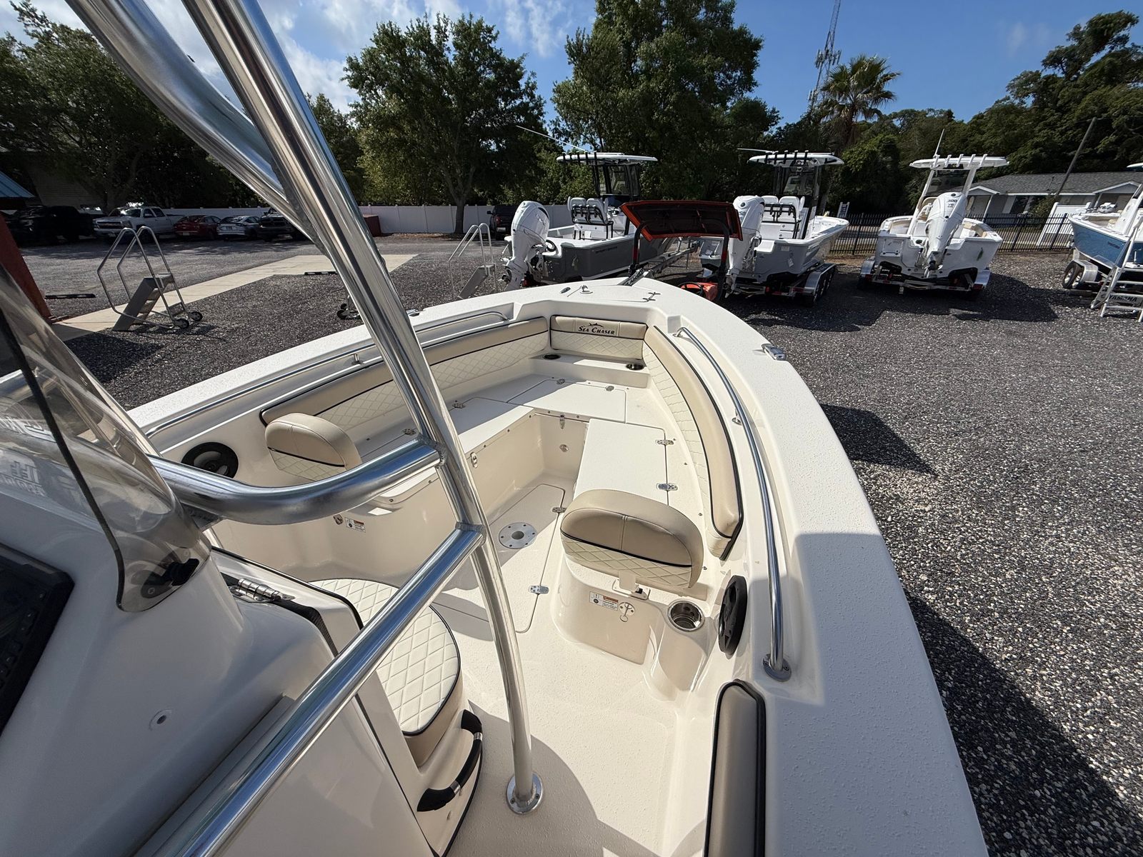 The Sea Chaser 22 HFC is designed with the needs of both anglers and families in mind. Its center console layout offers ample space for movement, making it easy to fish, entertain, or simply relax. The 22-foot length provides a stable and comfortable ride, while the thoughtful design ensures that every inch of space is used efficiently. Special features of this model enhance both functionality and enjoyment, making it a standout among center console boats for sale.