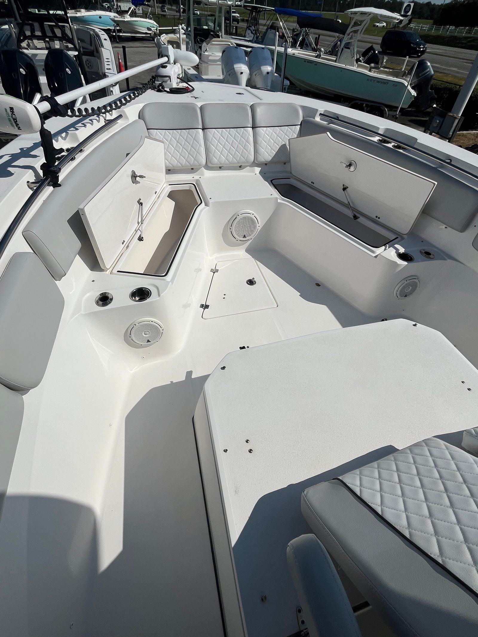 Powering the Sea Fox 328 Commander are two high-performance engines, delivering a combined 700 horsepower. This impressive setup ensures that you have all the power you need for fast cruising, smooth rides, and responsive handling in a variety of conditions. Whether you’re navigating coastal waters, heading offshore for fishing, or simply enjoying a day on the bay, the dual engines provide reliability and strength. The 700 horsepower allows for quick acceleration and efficient travel, making every outing exciting and enjoyable.